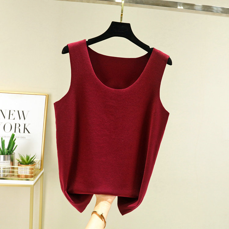 가을과 겨울 새로운 중간 두께의 양면 벨벳 남성 조끼 한국 슬림핏 따뜻한 내부 탑 라운드 넥 베이스 셔츠스토어 가기