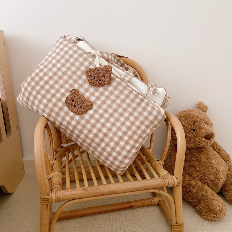 한국 격자 무늬 작은 곰 신선한 아기 어린이 유치원 두꺼운 퀼트 휴대용 노트북 매트스토어 가기