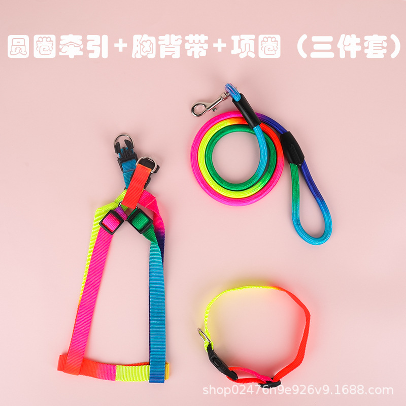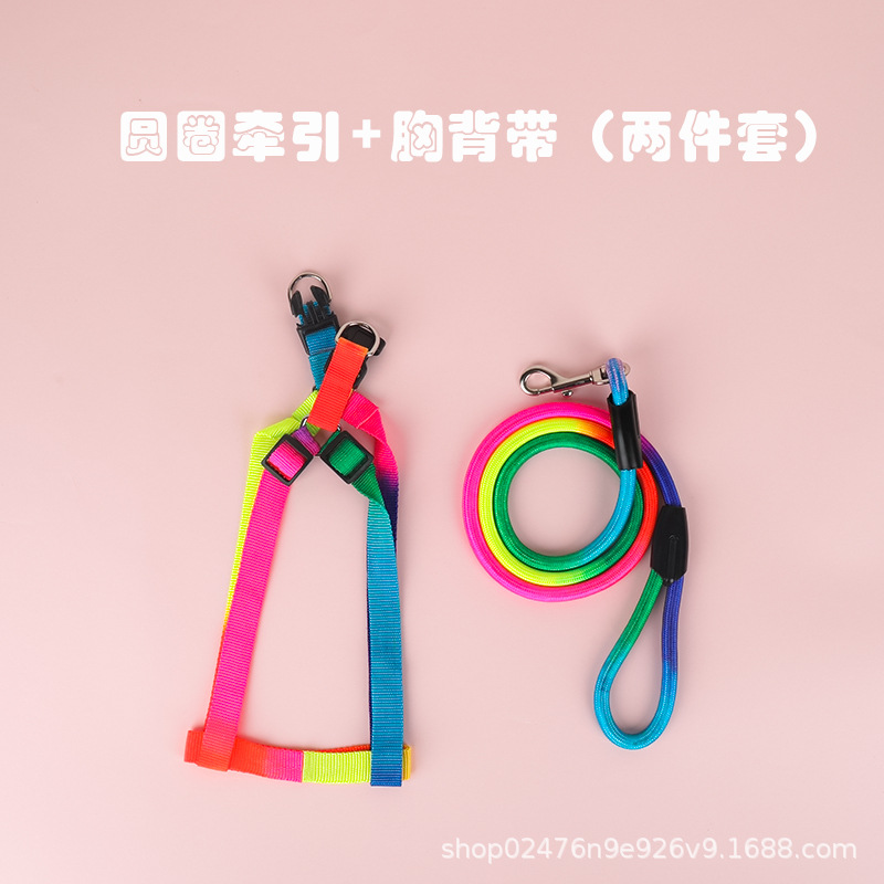 개 애완 동물 가죽 끈 고양이 가죽 끈 다채로운 애완 동물 가슴 스트랩 라운드 무지개 고양이 가죽 끈 개 체인스토어 가기