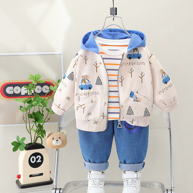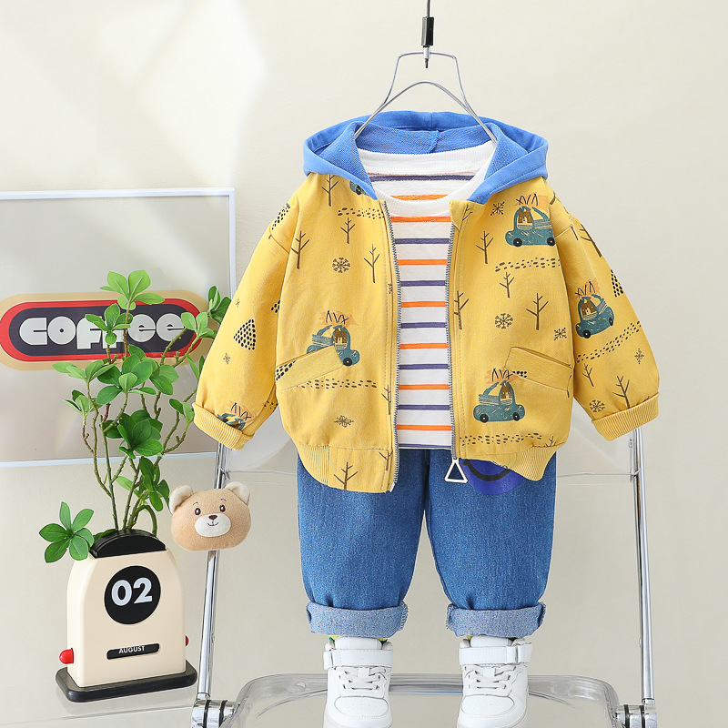 소년 가을 세트 새로운 한국 아동 지퍼 까마귀 코트 아기 외국 스타일 3 피스 아동 의류 도매스토어 가기