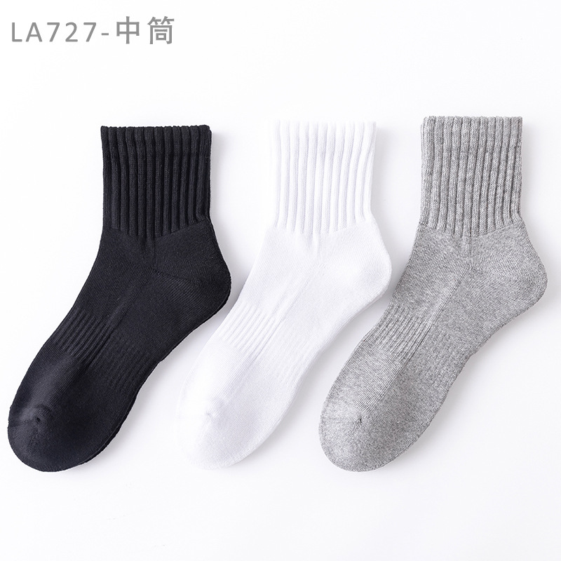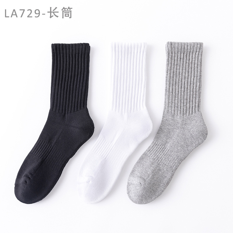남성용 미드 양말 빗질 코튼 솔리드 컬러 타월 바닥 스포츠 양말 땀 흡수 하이탑 롱 튜브 휴지통 양말 흑백 양말스토어 가기