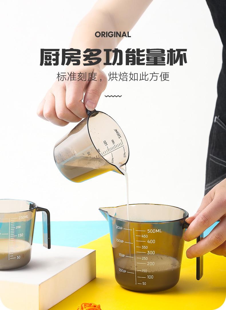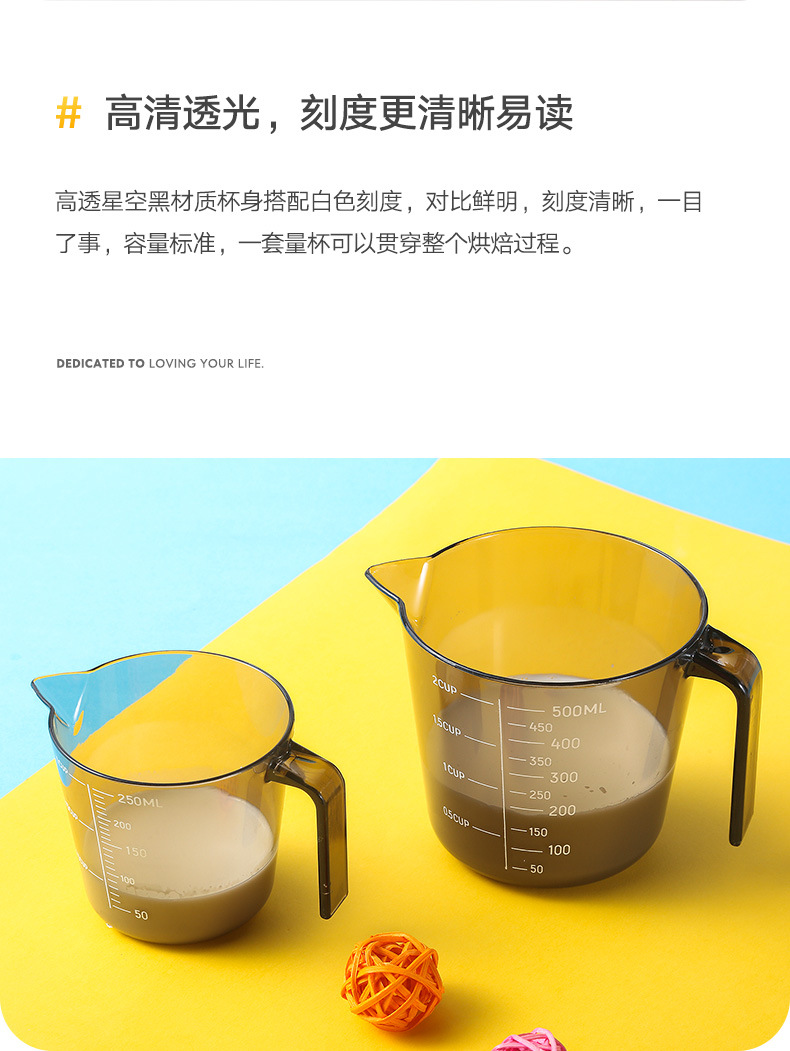 플라스틱 측정 컵 투명 스케일 컵 크기 측정 컵 우유 차 가게 주방 홈 베이킹 측정 도구 세트