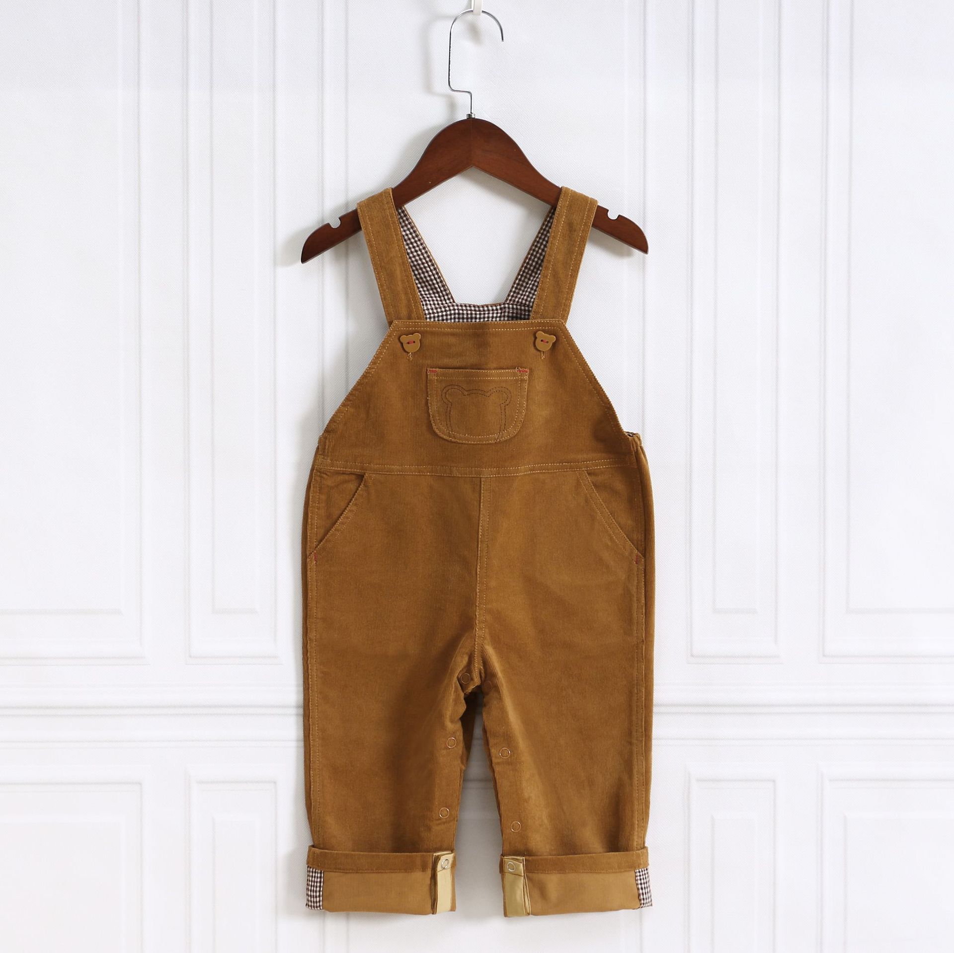 背带的扣子也是卡通熊头设计 细节满满