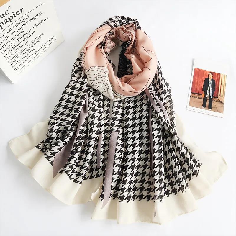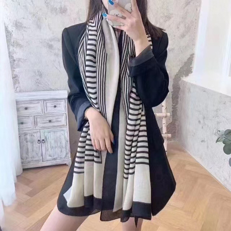 2021 새로운면과 린넨 스카프 패션 따뜻한 롱 모든 매치 스카프 여성용 한국식 실크 스카프 주름 숄스토어 가기