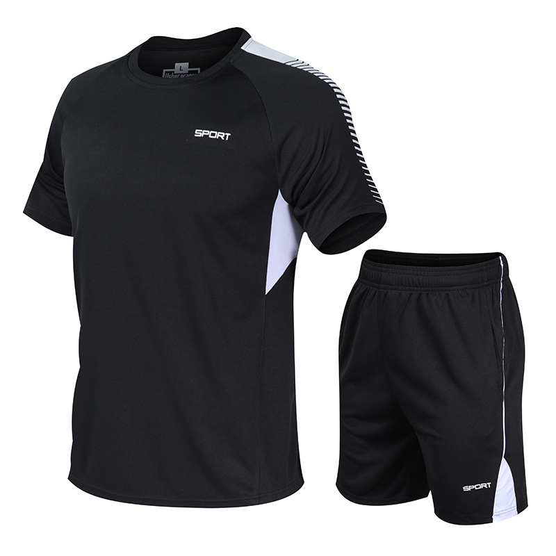 스포츠 세트 남자의 플러스 사이즈 속건 통기성 달리기 세트 느슨한 캐주얼 피트니스 반팔 새로운 캐주얼