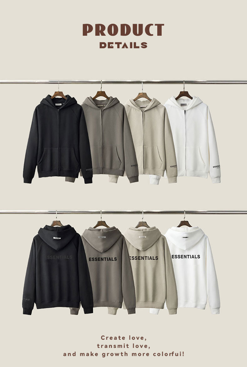 FOG 멀티 라인 ESSENTIALSZONE 지퍼 자켓 하이 스트리트 스웨트 셔츠 긴팔 까마귀 남성과 여성 트렌디 브랜드 봄, 가을스토어 가기