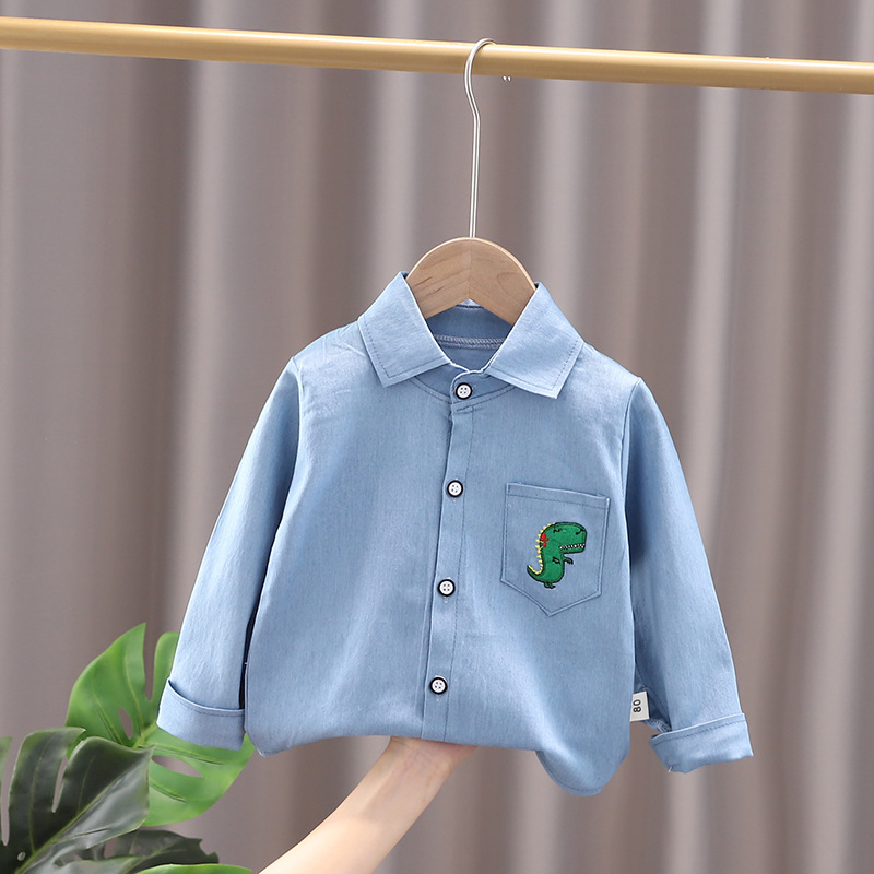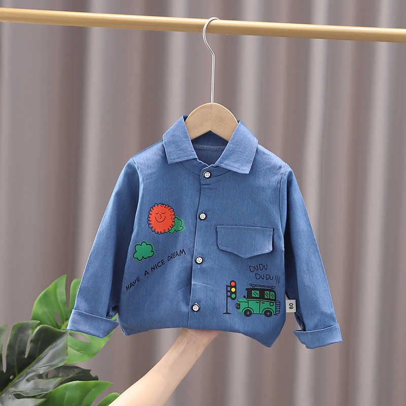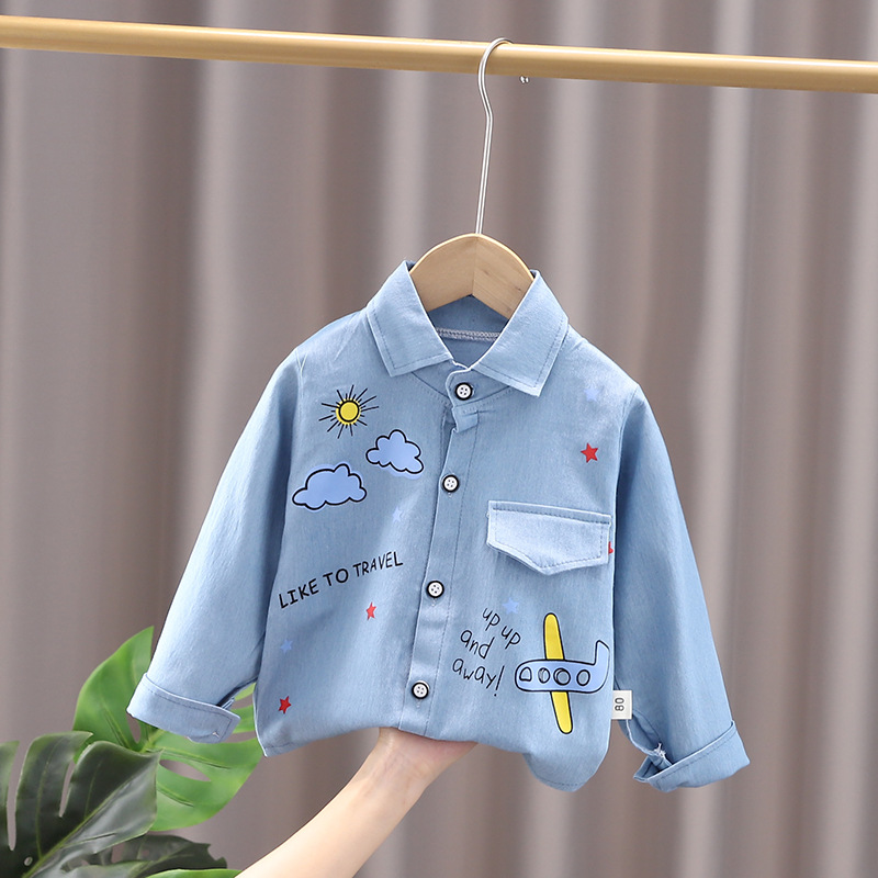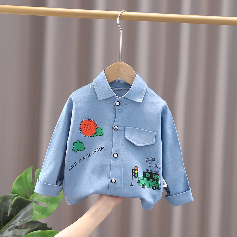 어린이 셔츠 남자 어린이 봄 가을 신상품 긴팔 면 셔츠 2023 데님 가을 재킷스토어 가기
