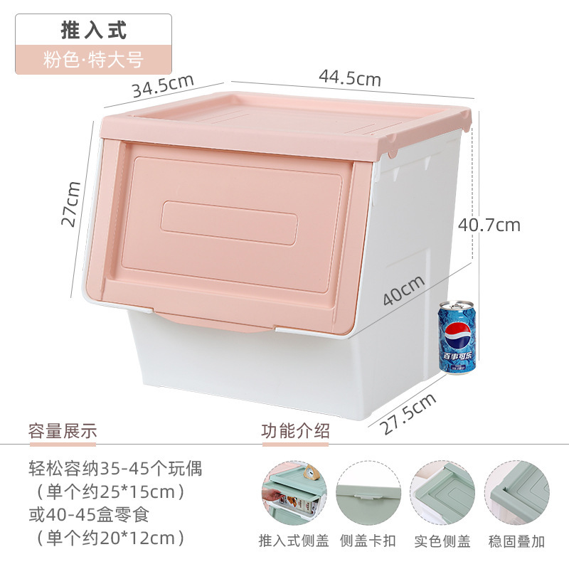 Younai 전면 개방형 대용량 어린이 아기 장난감 의류 보관 투명 정리 푸시 인 보관 상자 보관