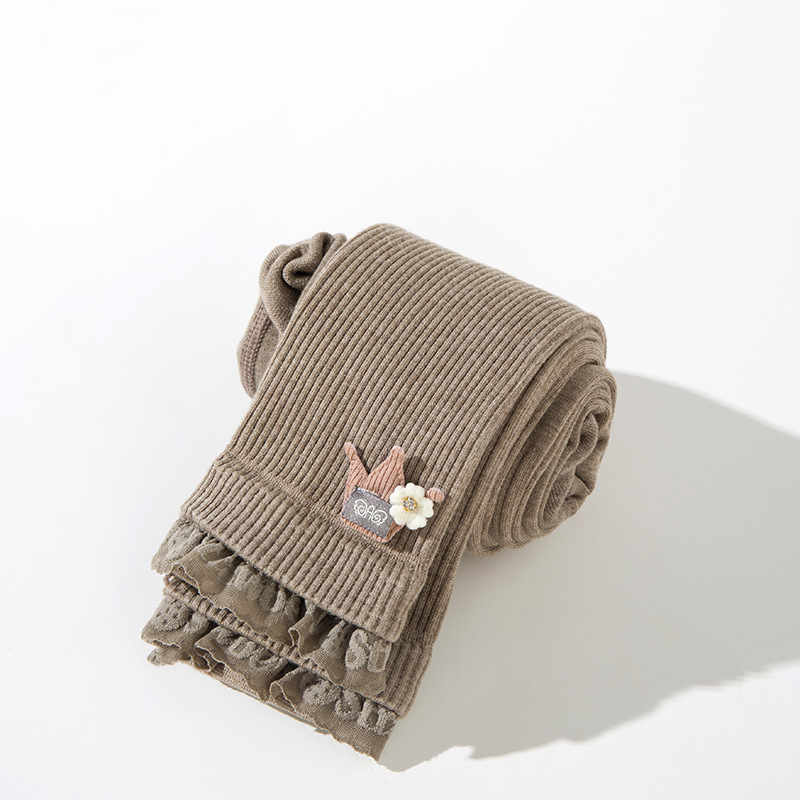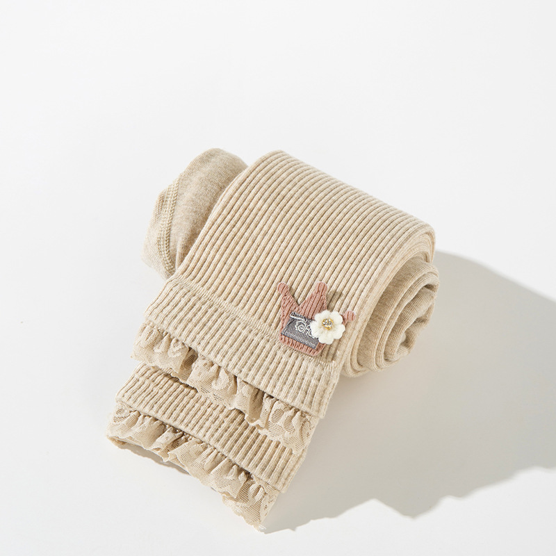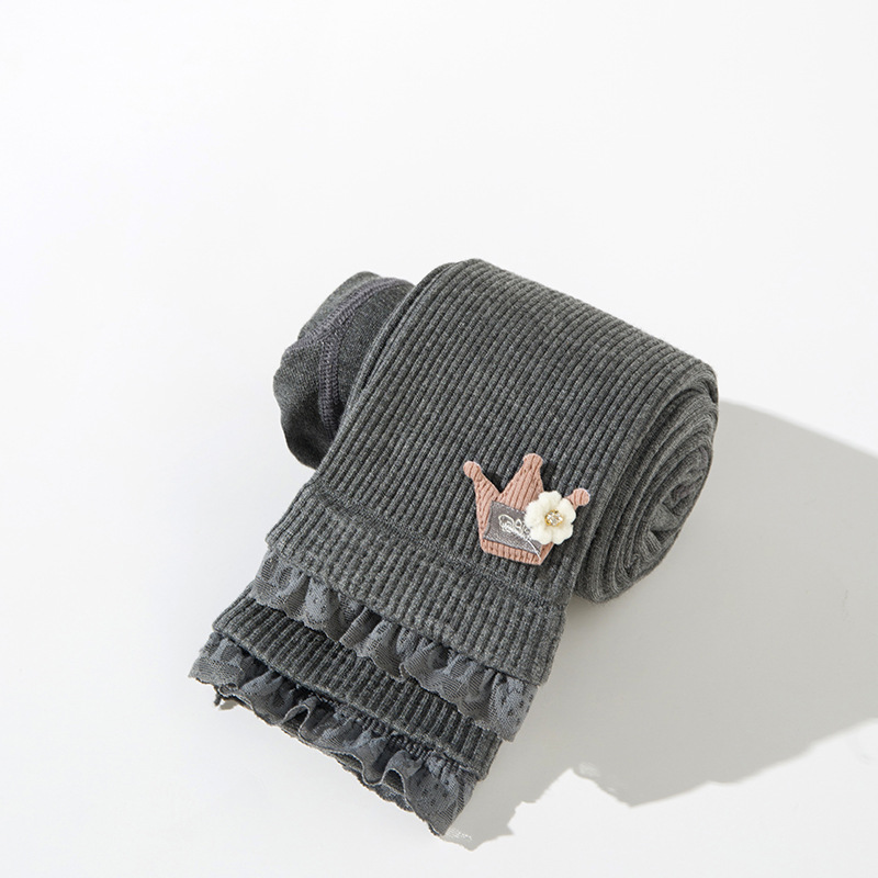 가을 여아 레깅스 아기 여아 세로 크라운 크롭 레이스 바지 큰 어린이 빗질 면 겉옷 바지