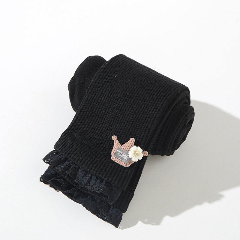 가을 여아 레깅스 아기 여아 세로 크라운 크롭 레이스 바지 큰 어린이 빗질 면 겉옷 바지스토어 가기