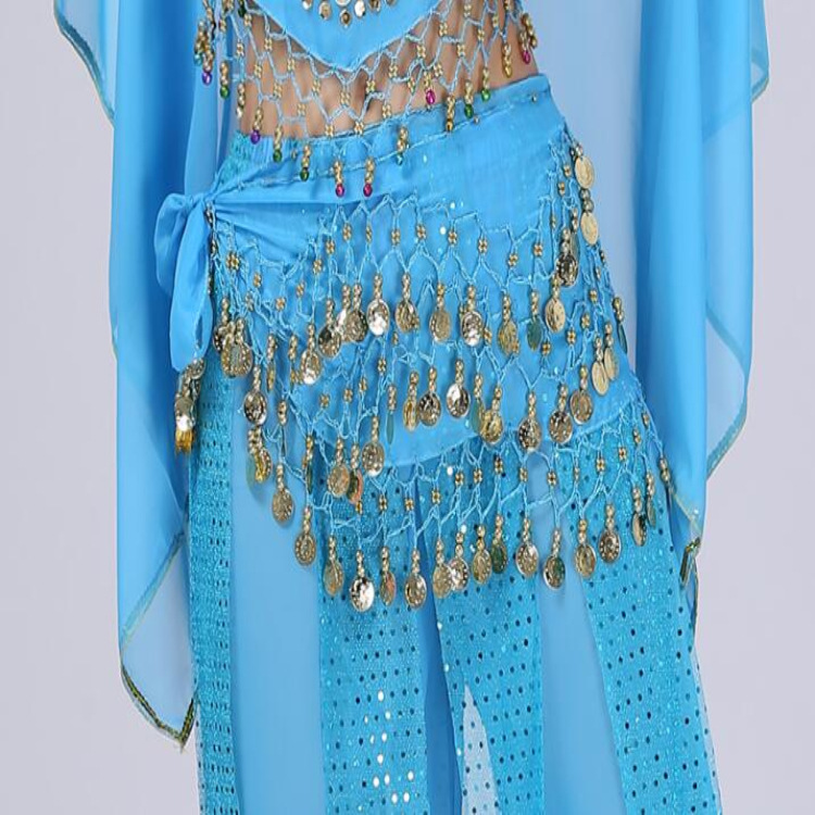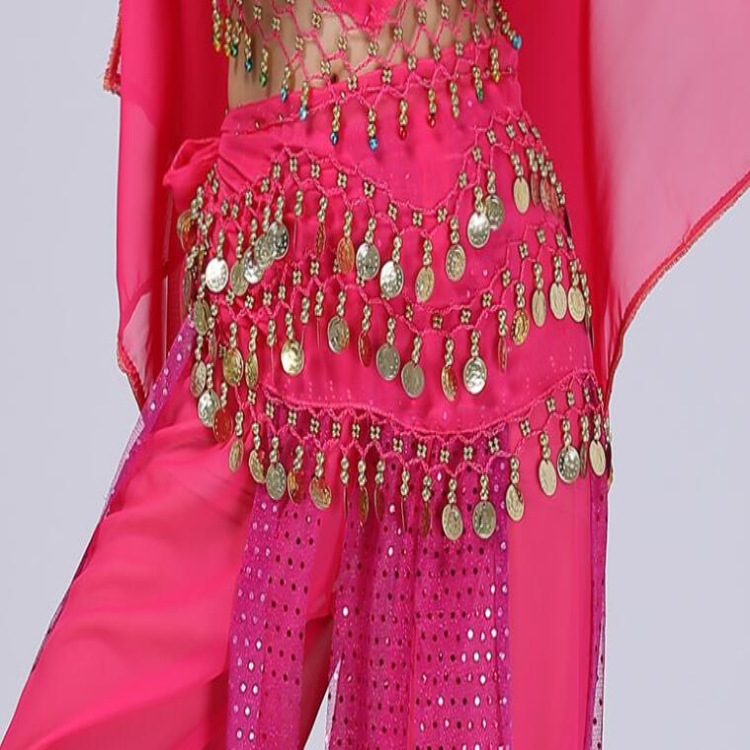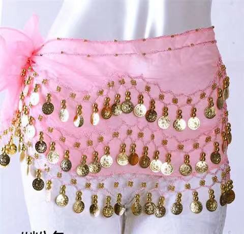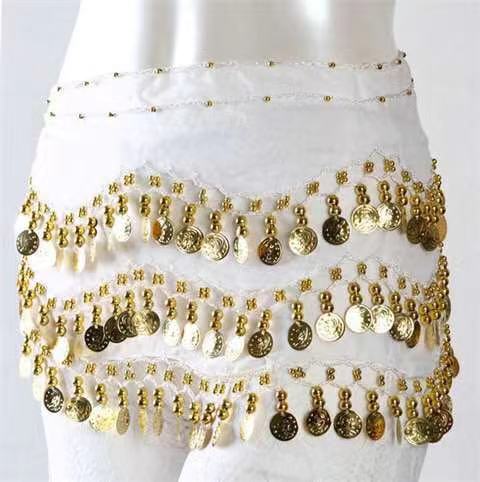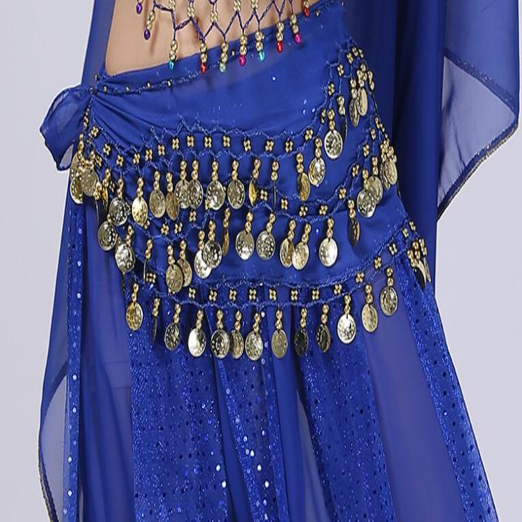 밸리 댄스 128 통화 허리 체인 3 열 황금 교수형 통화 인도 댄스 공연 허리 타월 댄스 연습 힙 타월