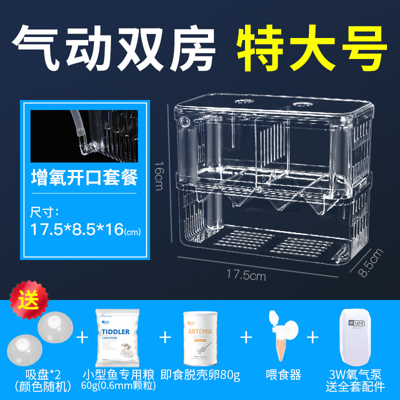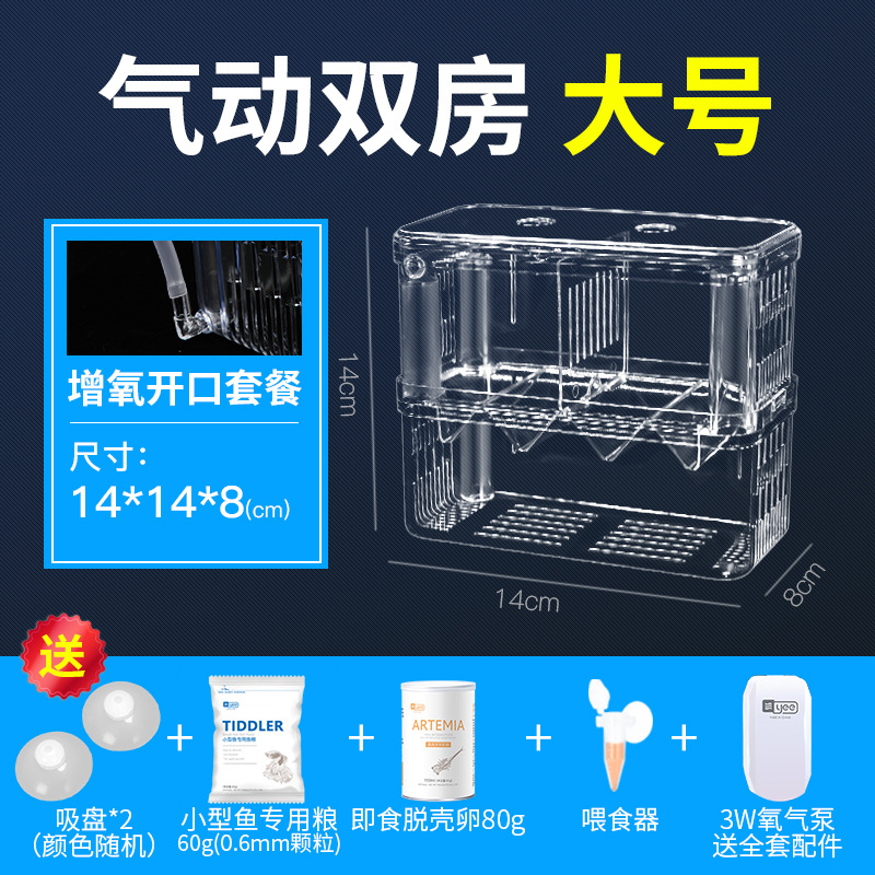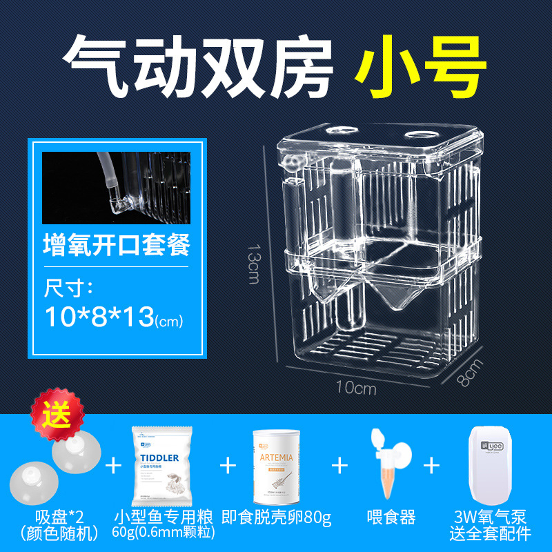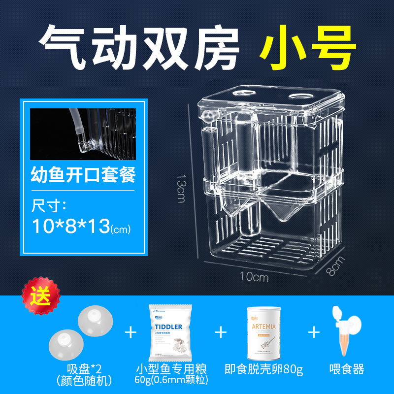 • [어린 물고기 개봉을 위한 저렴한 패키지] 공압 산소화 이중실(소형) + 무료 물고기 먹이 + 개봉 먹이 + 피더