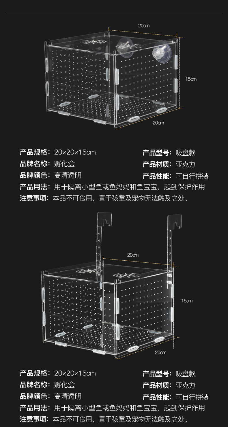아크릴 격리 상자 납란기 물고기 알 부동 수족관 부화 상자 거북이 인큐베이터 어린 어류 생산실 가정용
