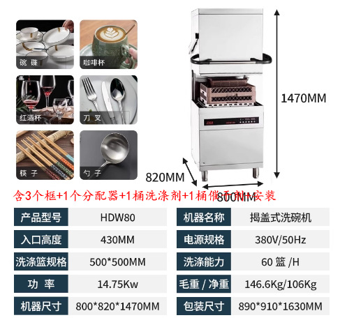 Hualing, 식기 세척기 HDW-50/80 상업용 완전 자동 호텔 매점 식당 그릇 세탁기 컵 세탁기