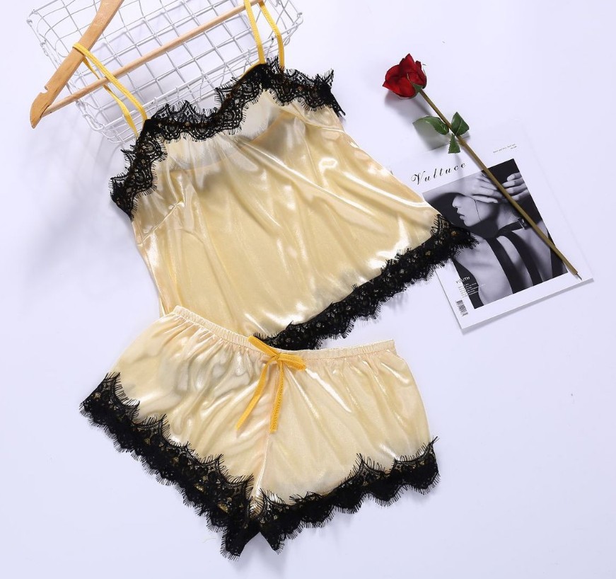 유럽과 미국의 모조 실크 레이스 분할 잠옷 세트 가정 잠옷 재미 레이스 머리카락의 세대를 세트스토어 가기