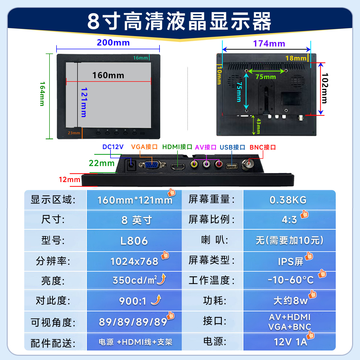 • 8inch IPS 정사각형 화면 1024*768(VGA+HDMI+AV+BNC)