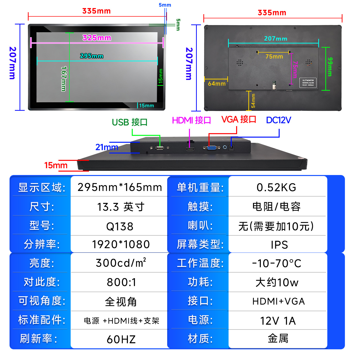 • 13.3인치 1920*1080(VGA+HDMI+AV+BNC)