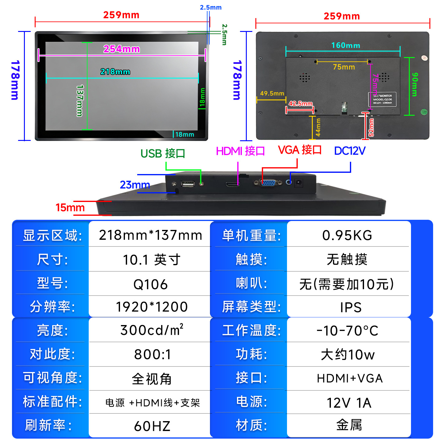 7寸显示器8/9/10/11寸hdmi显示屏小型液晶电视迷你监控显示器