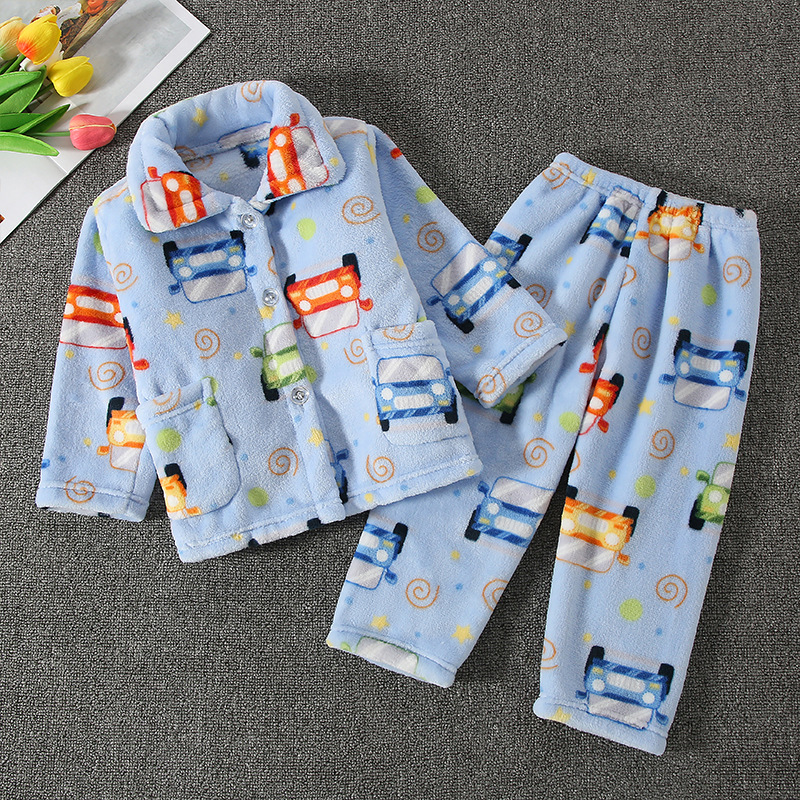 어린이 잠옷 가을과 겨울 플란넬 따뜻한 두꺼운 여아 가정 의류 세트 소년 어린이 아기 잠옷스토어 가기