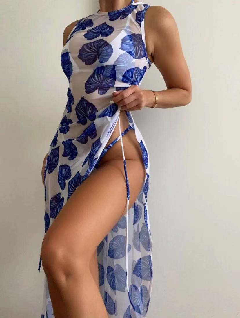 2021 유럽과 미국의 새로운 꽃 민소매 수출 이국적인 비키니 숙녀 수영복 섹시한 비키니스토어 가기