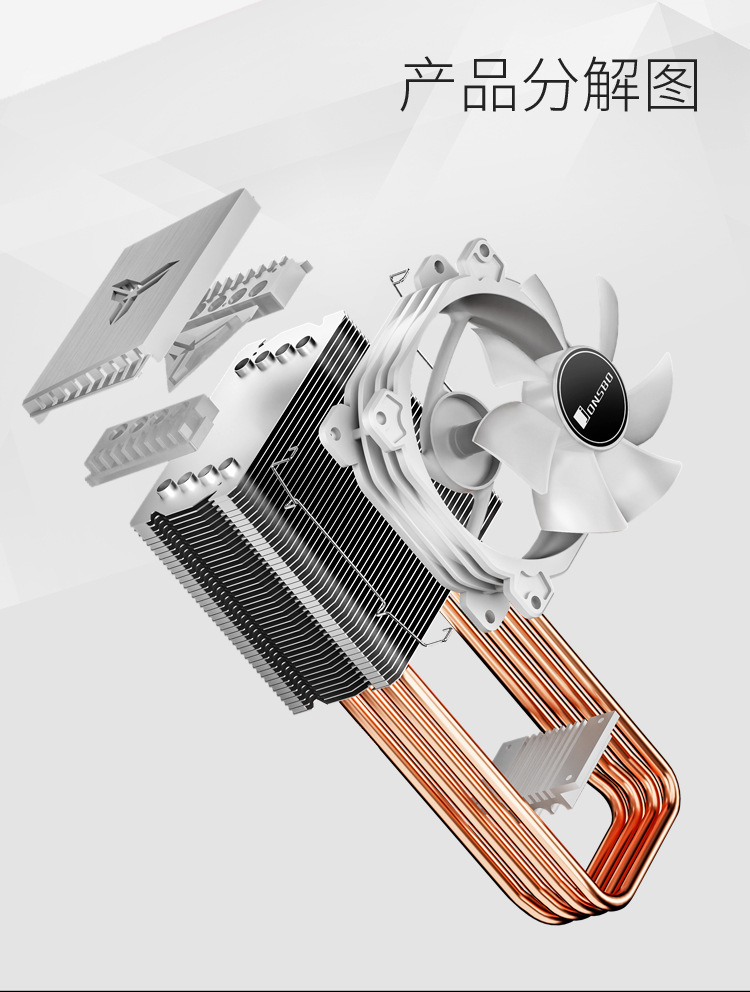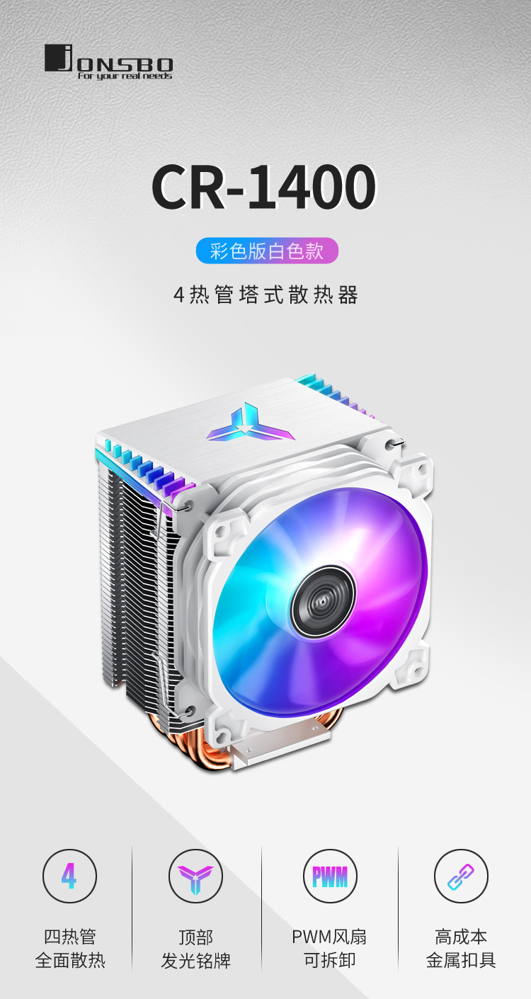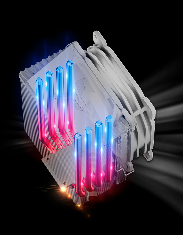 Josibo CR1400 흰색 4PIN 자동 색상 변경 온도 제어 타워 9cm 4 열 파이프 CPU 라디에이터 팬