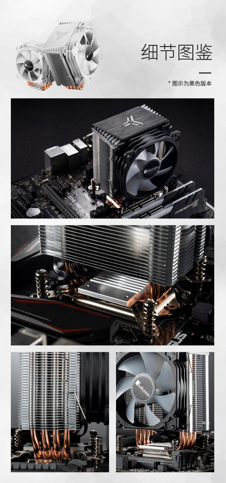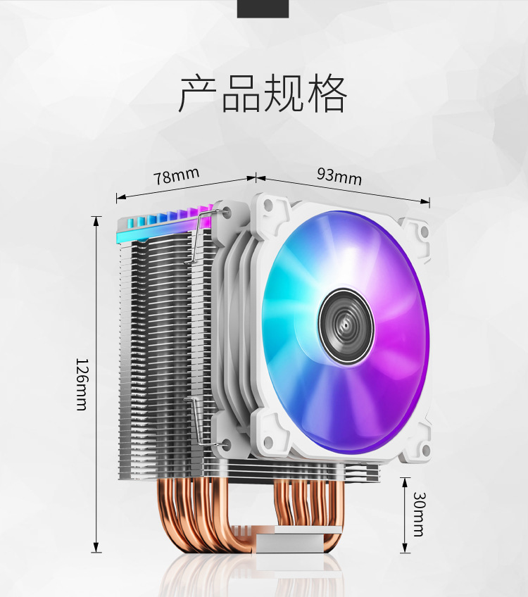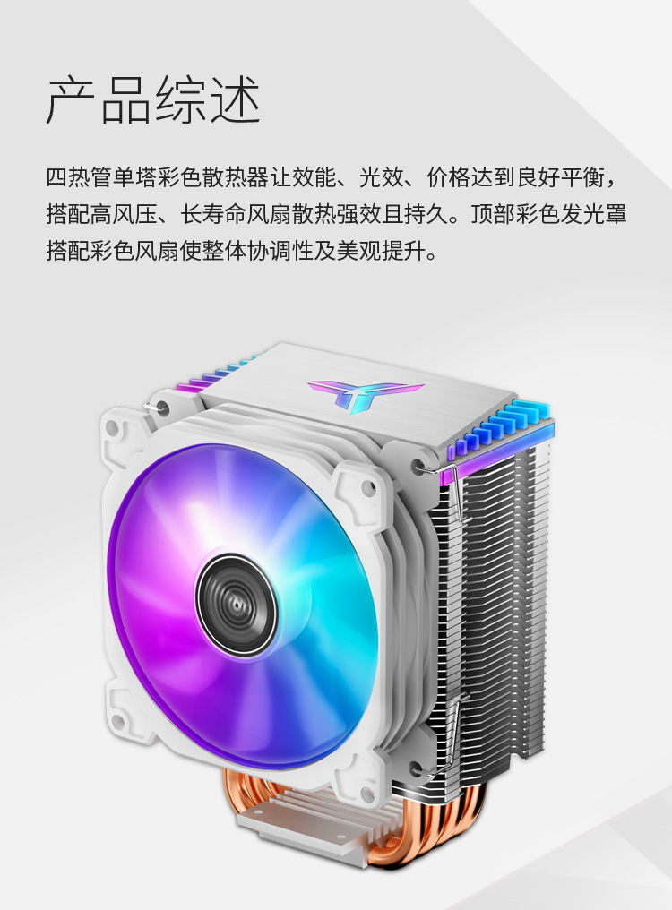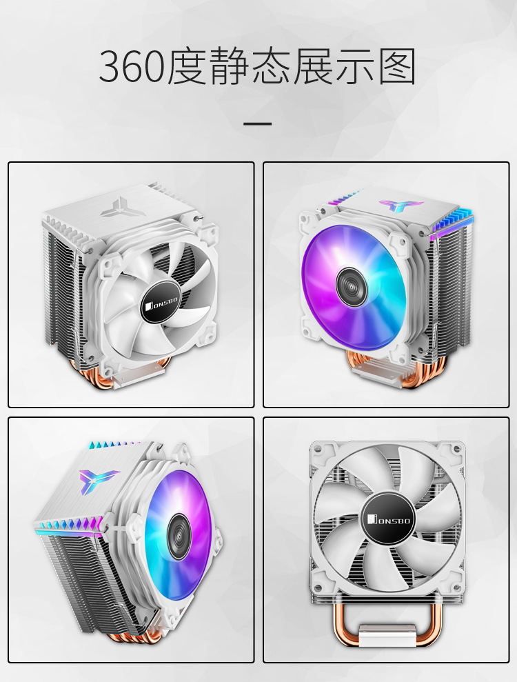 Josibo CR1400 흰색 4PIN 자동 색상 변경 온도 제어 타워 9cm 4 열 파이프 CPU 라디에이터 팬스토어 가기