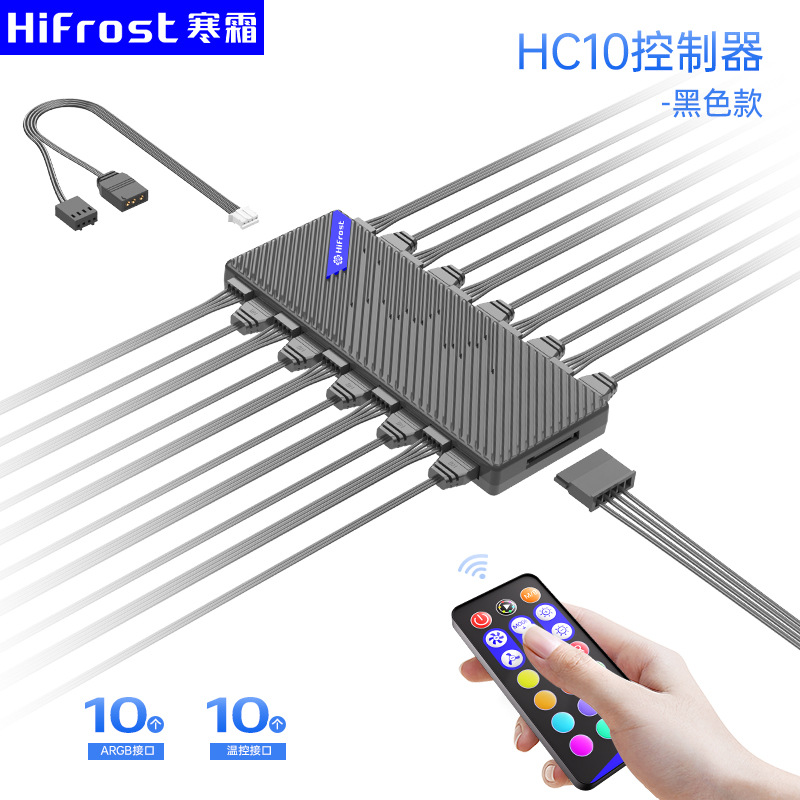 • 온도 조절 + ARGB + 원격 제어 듀얼 채널 10포트 컨트롤러(검은색)