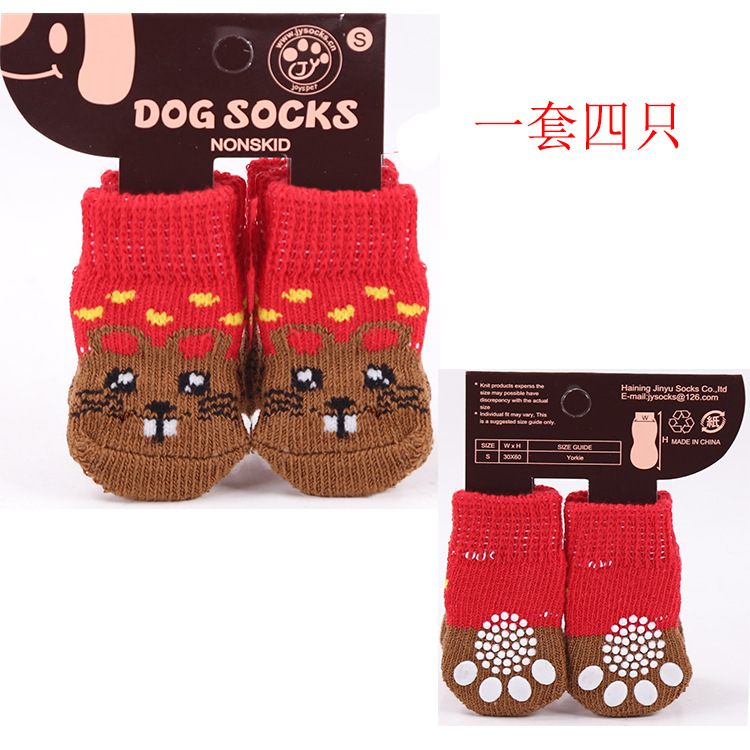 스타일 옵션 크리스마스 새해 개 고양이 애완 동물 테디 Bomei 미끄럼 방지 양말 고무 커버 제조 업체 도매스토어 가기