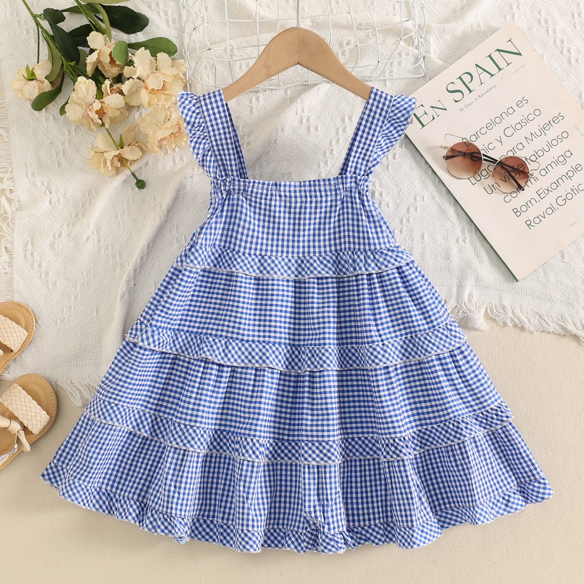 6120 새로운 여아 여름 원피스 격자 무늬 원피스 여아 아기 치마 여름 아동복 슬링 스커트 원피스 머리