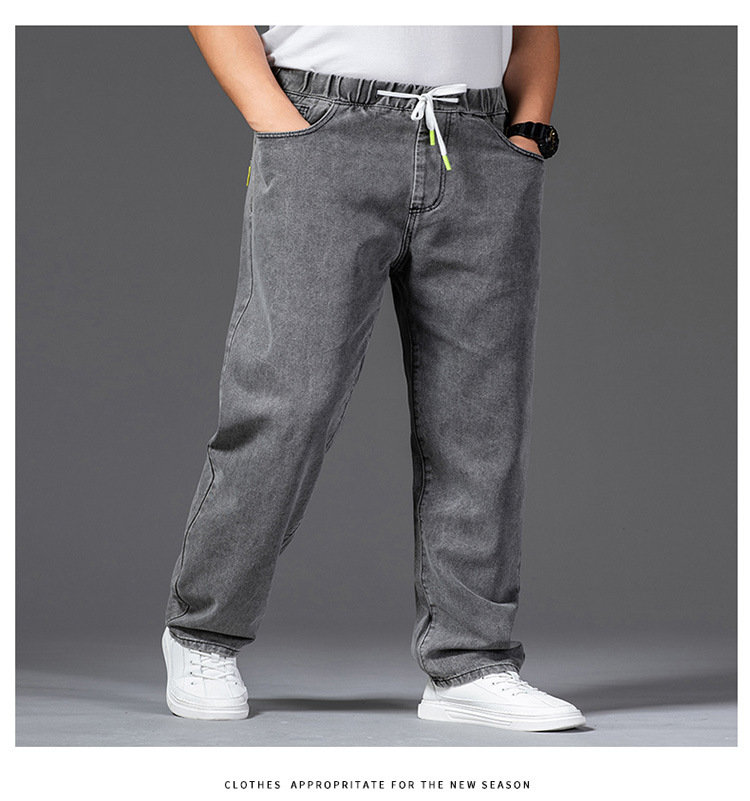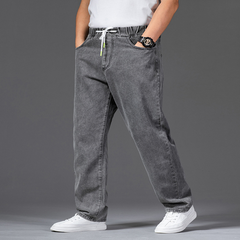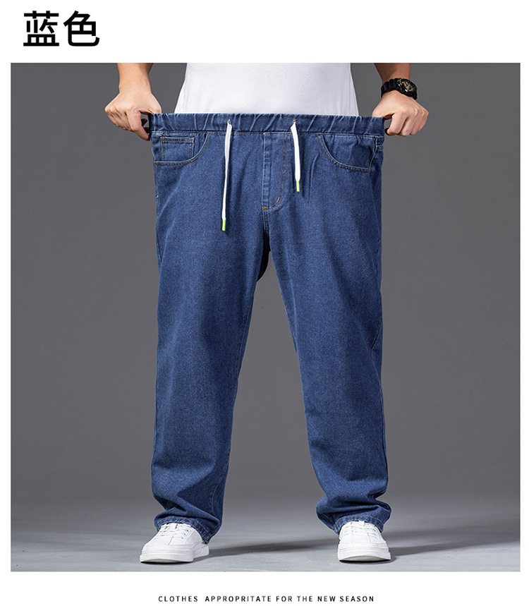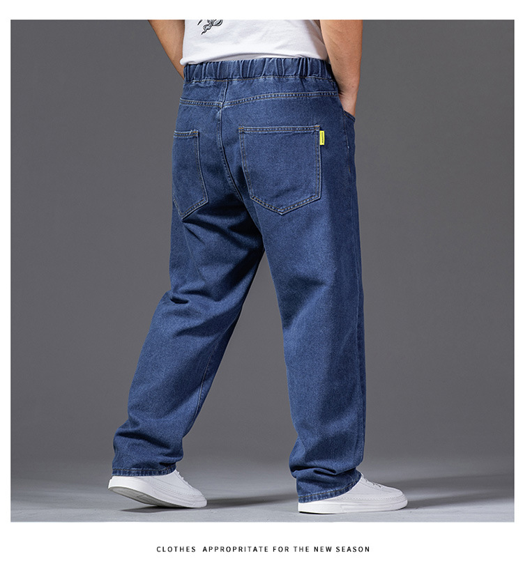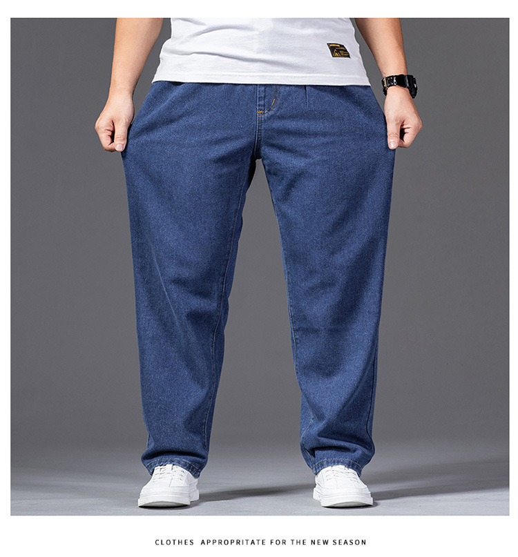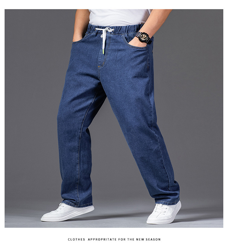 가을 두꺼운 다리 큰 바지 다리 와이드 다리 청바지 남자의 스트레이트 느슨한 큰 다리 바지 와이드 다리 탄성 플러스 사이즈스토어 가기