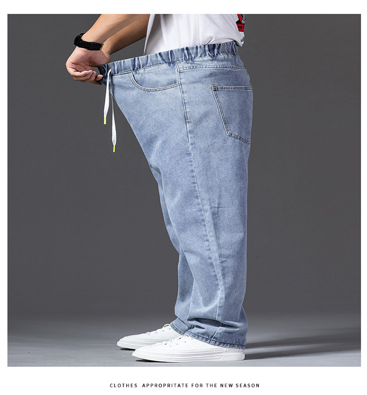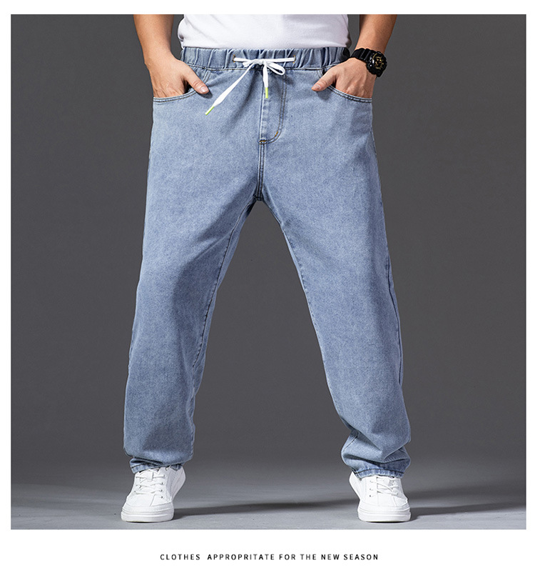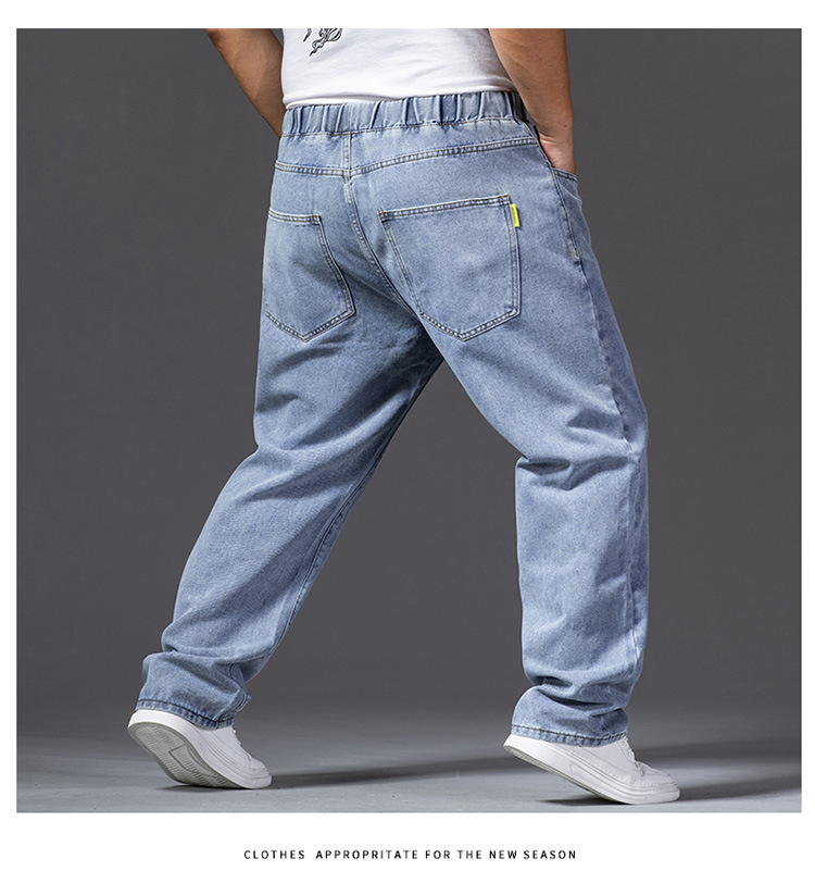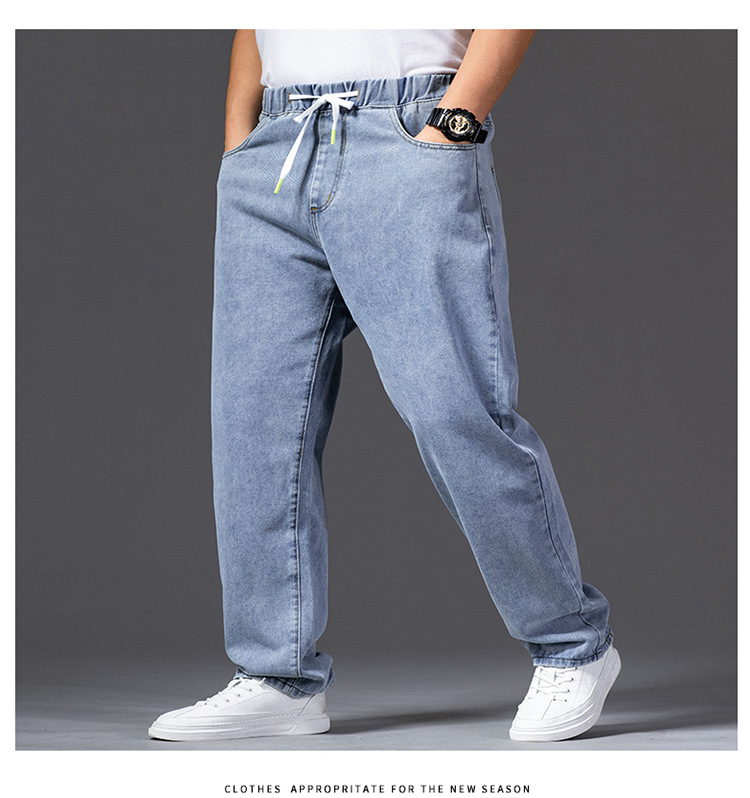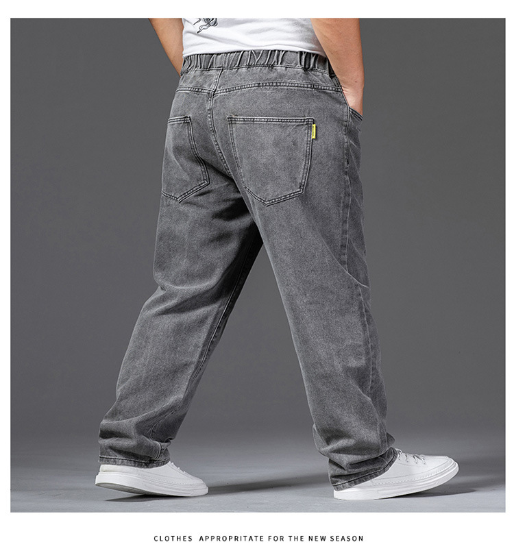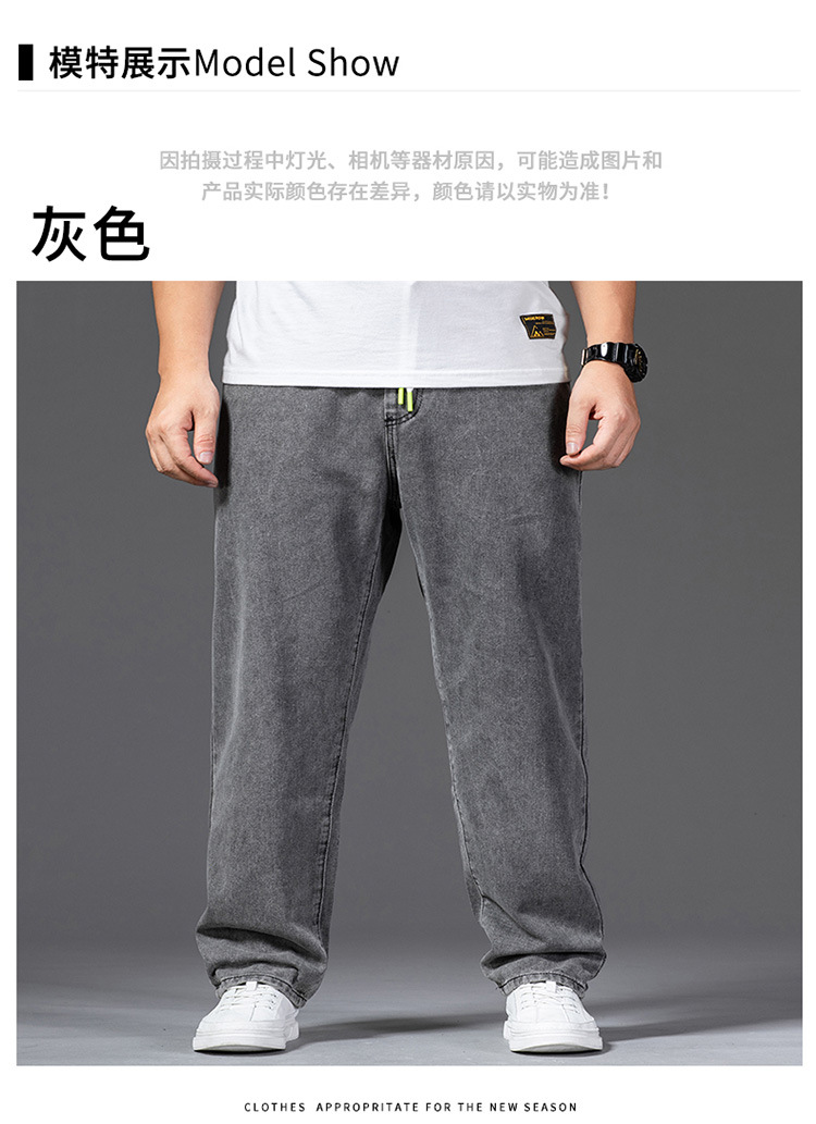가을 두꺼운 다리 큰 바지 다리 와이드 다리 청바지 남자의 스트레이트 느슨한 큰 다리 바지 와이드 다리 탄성 플러스 사이즈스토어 가기
