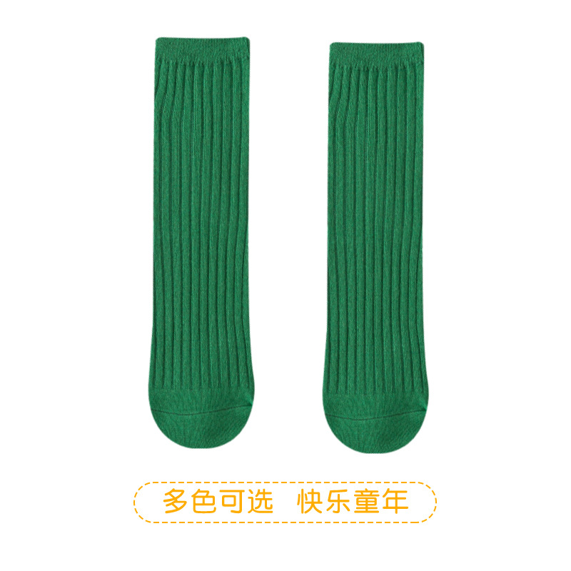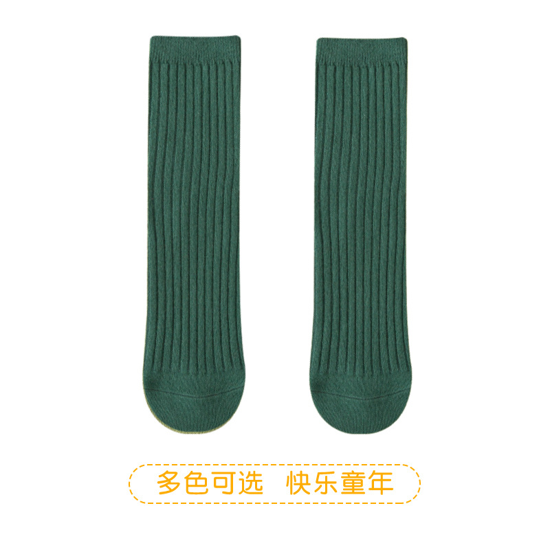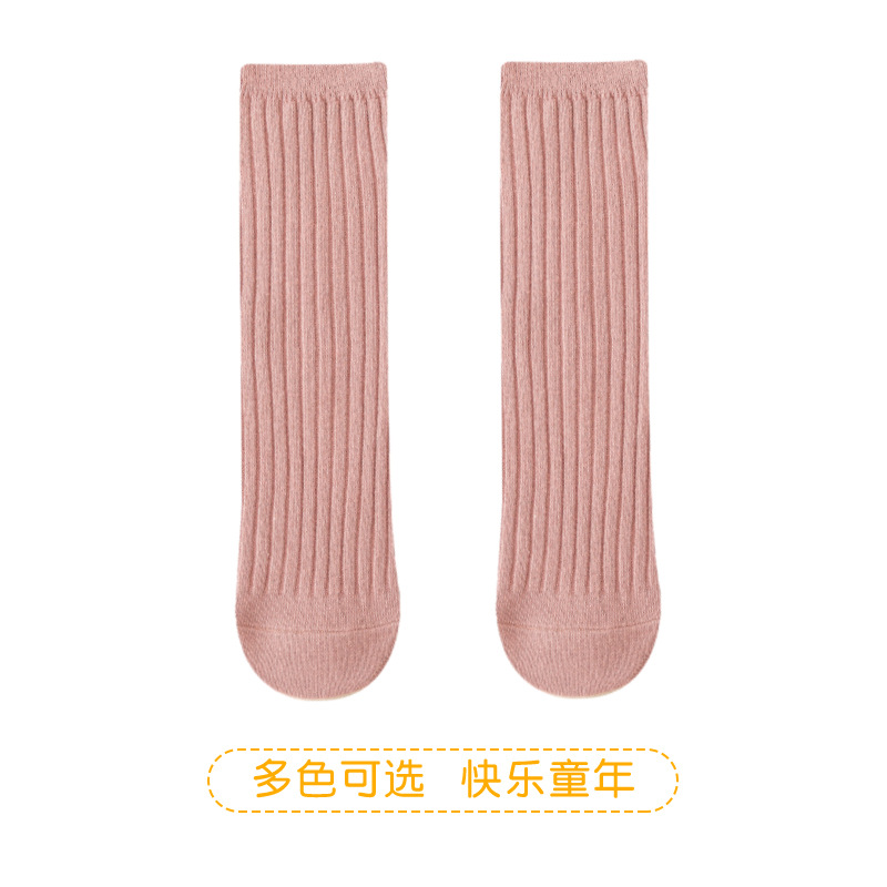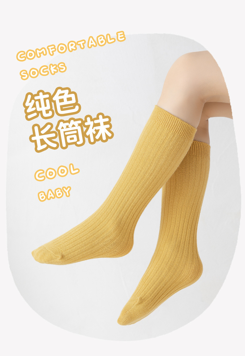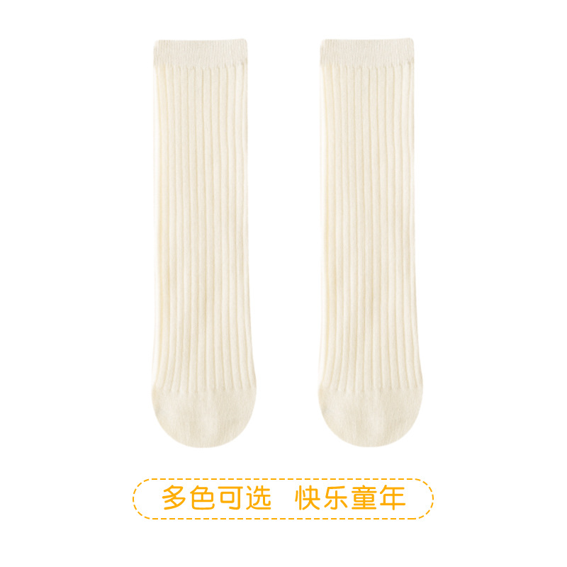 2025년 여름 신상품 중대형 아동용 남녀공용 봄 가을 신상품 이중 바늘 롱삭스 여아용 단색 통기성 면 소재 아기 양말스토어 가기