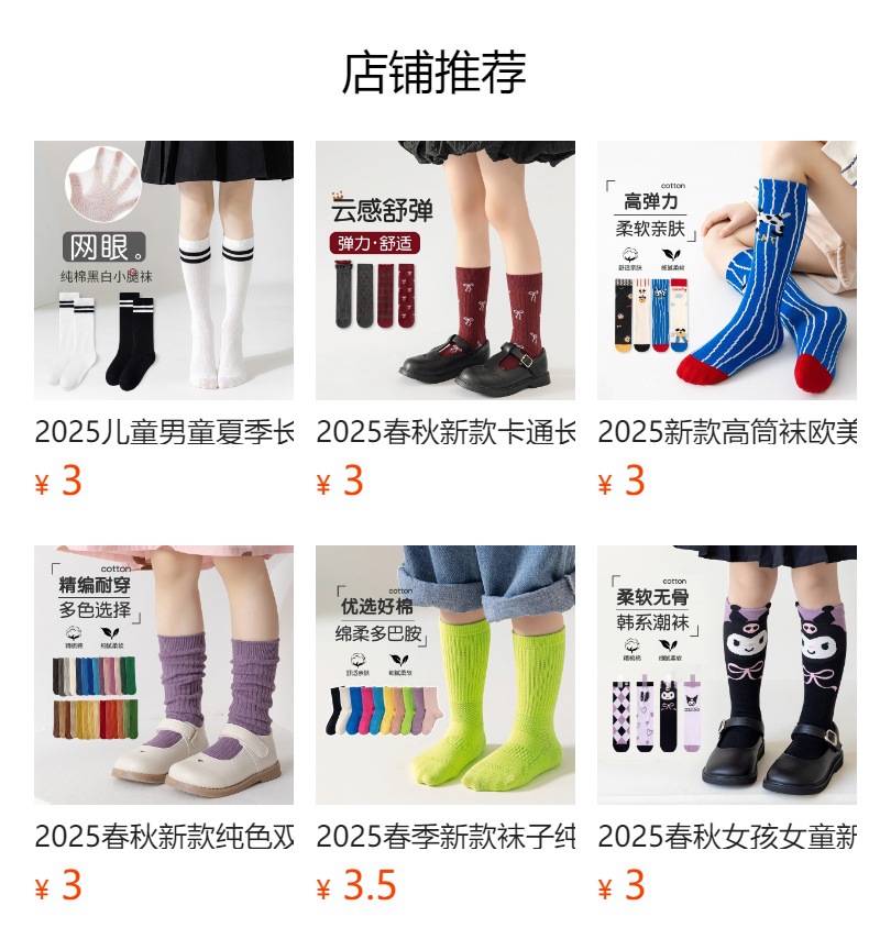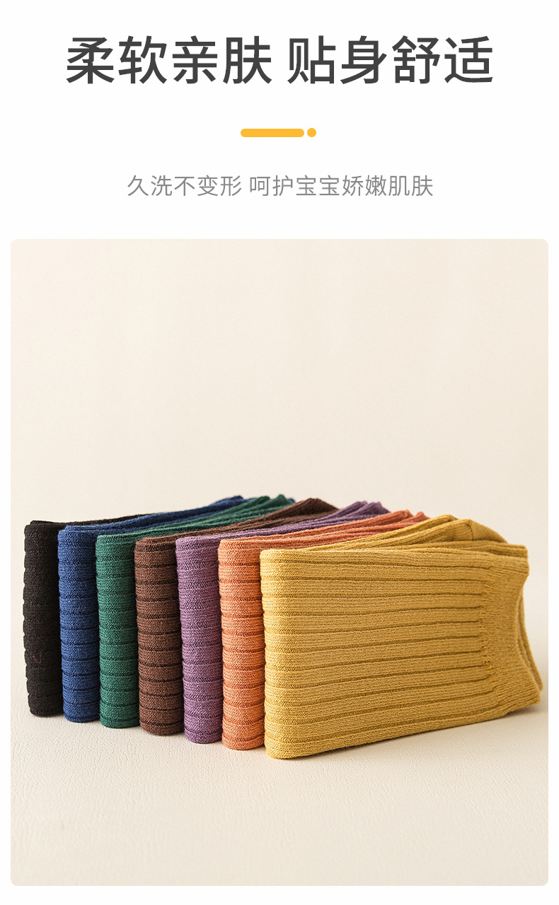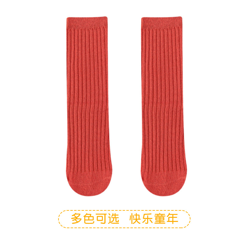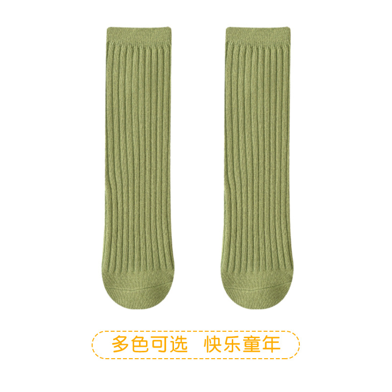 2025년 여름 신상품 중대형 아동용 남녀공용 봄 가을 신상품 이중 바늘 롱삭스 여아용 단색 통기성 면 소재 아기 양말스토어 가기