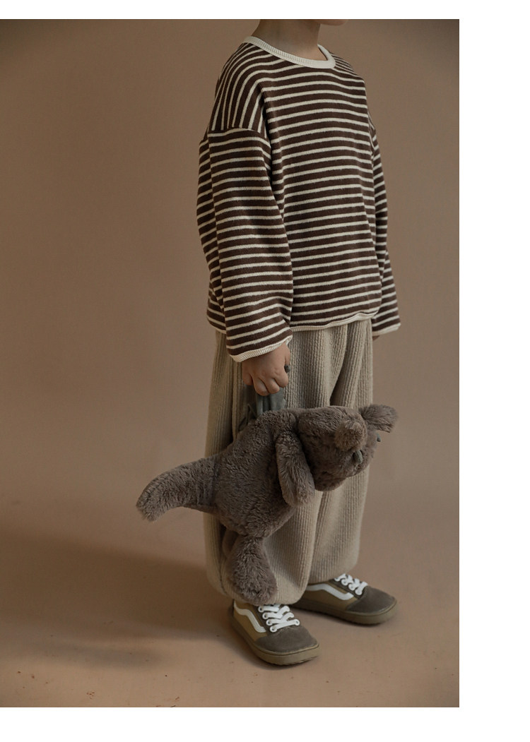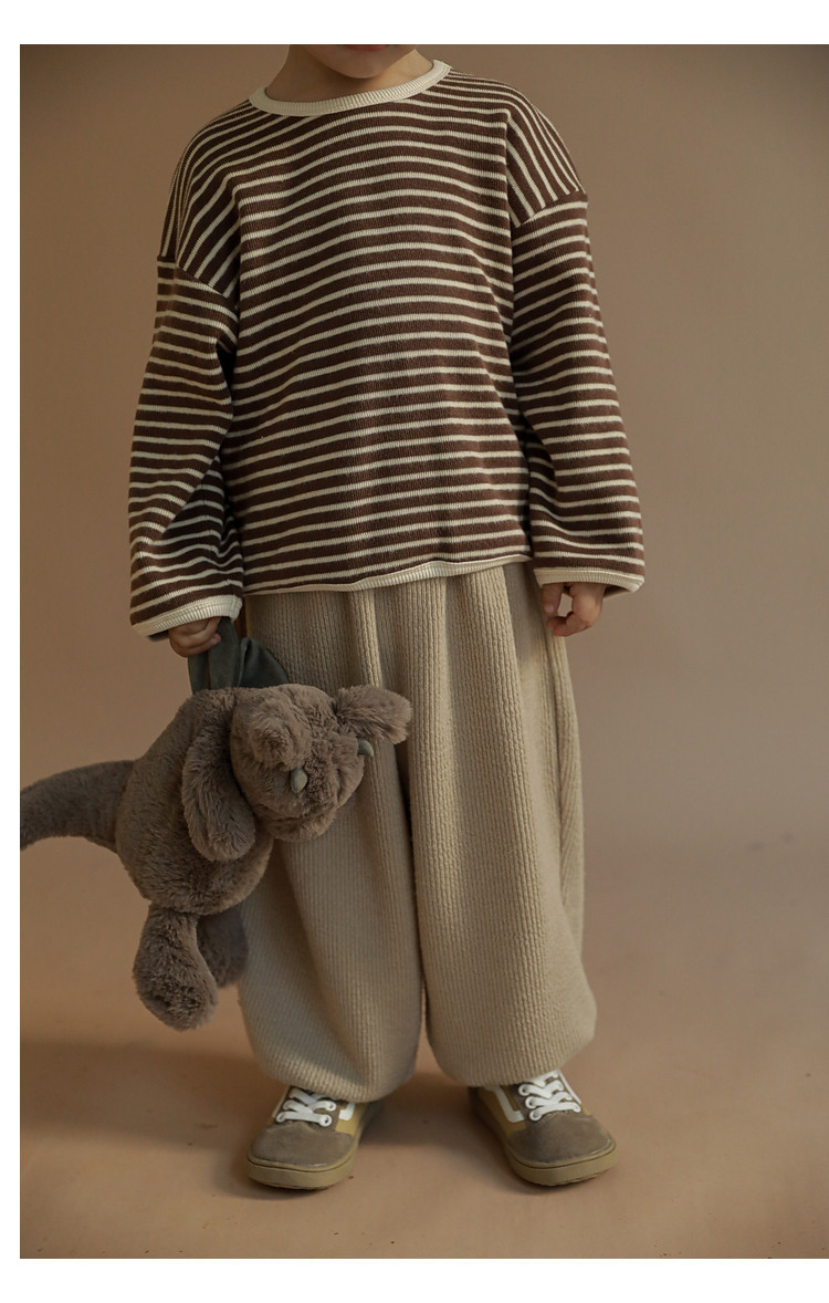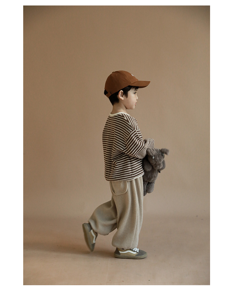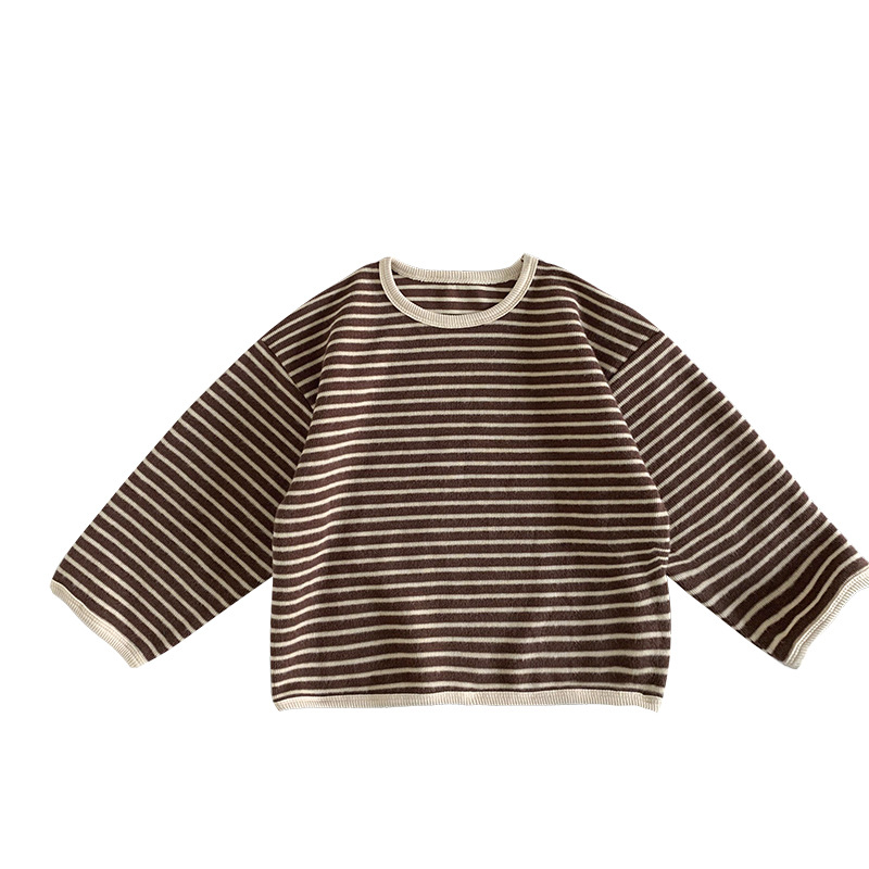 Wurib 아동용 긴팔 티셔츠 봄과 가을 새로운 스타일 탑 스트라이프 크루넥베이스 셔츠 소년과 아기를 위한 루즈한 티셔츠