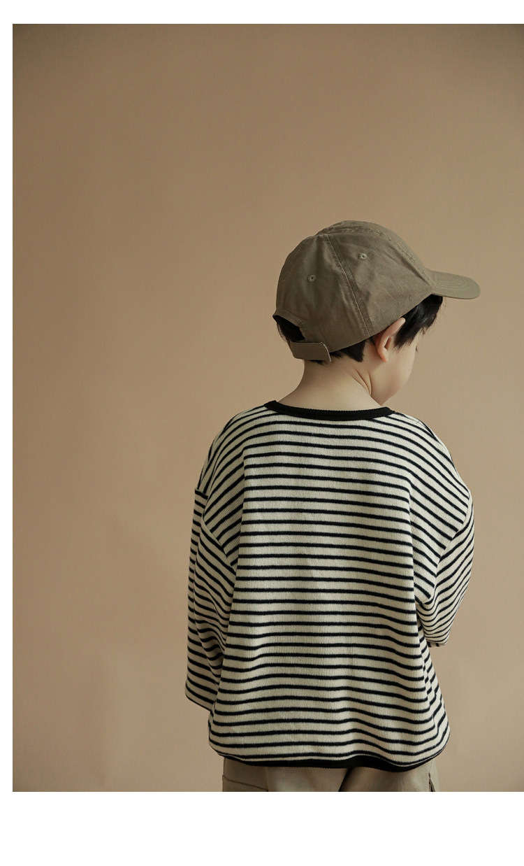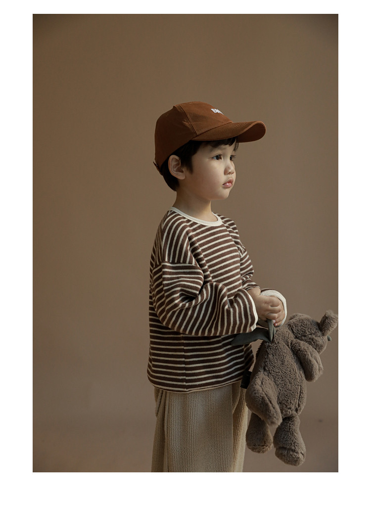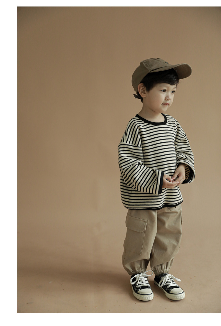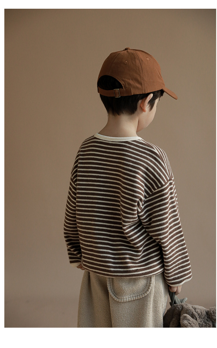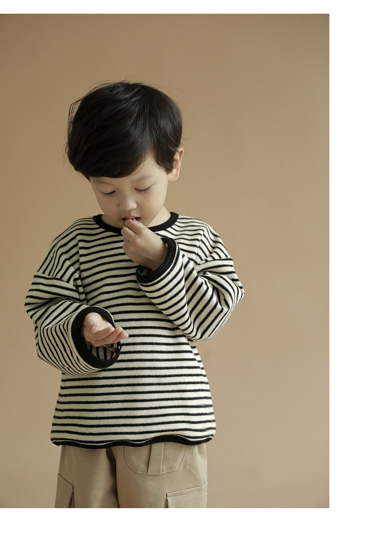 Wurib 아동용 긴팔 티셔츠 봄과 가을 새로운 스타일 탑 스트라이프 크루넥베이스 셔츠 소년과 아기를 위한 루즈한 티셔츠스토어 가기