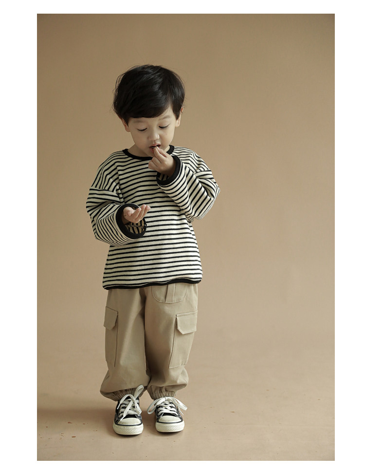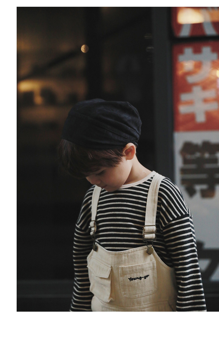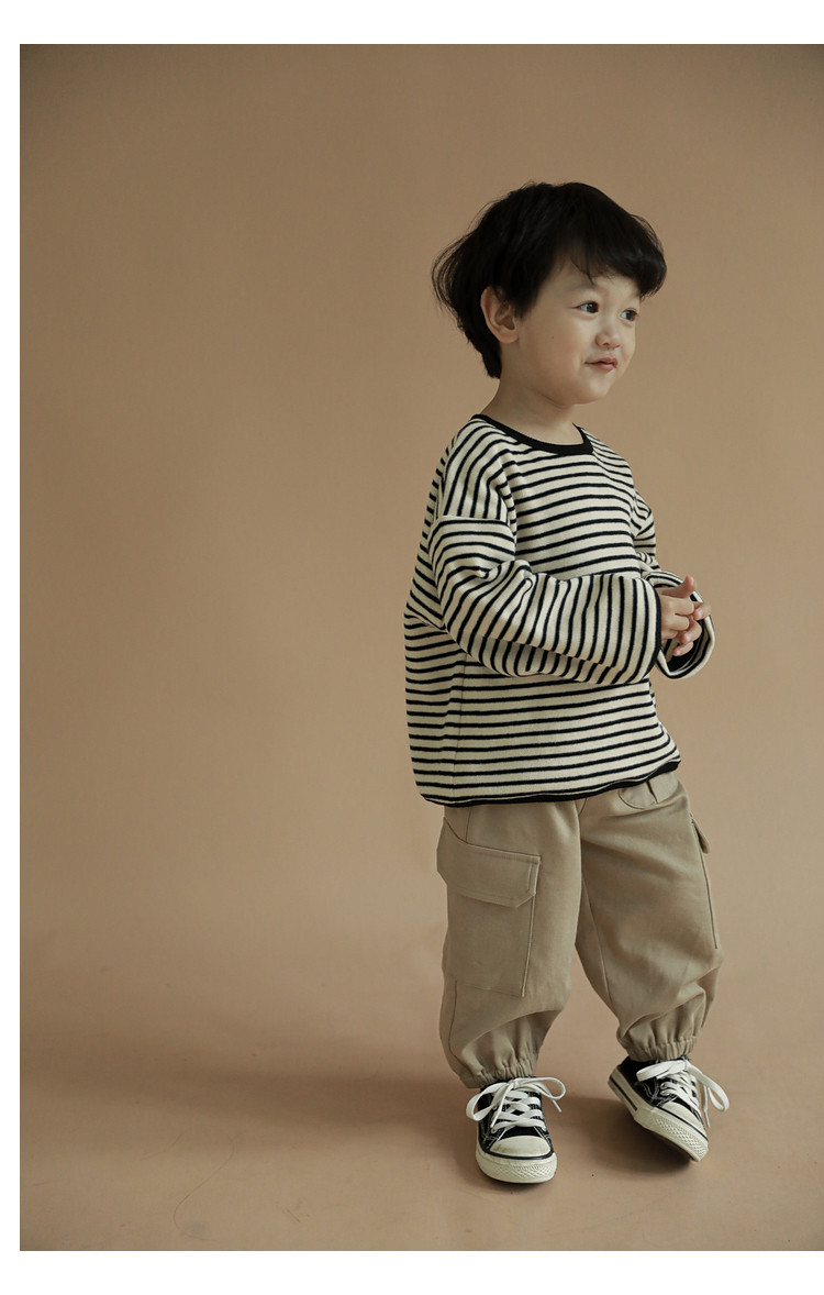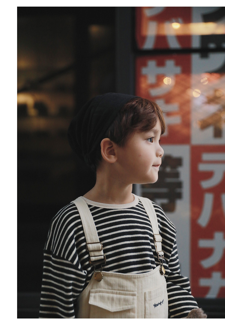 Wurib 아동용 긴팔 티셔츠 봄과 가을 새로운 스타일 탑 스트라이프 크루넥베이스 셔츠 소년과 아기를 위한 루즈한 티셔츠스토어 가기