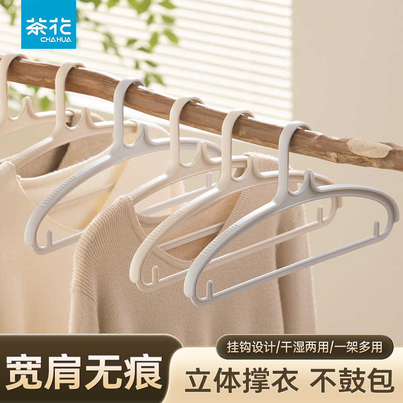 동백 넓은 어깨 옷걸이 가정용 원활한 미끄럼 방지 옷 옷걸이 성인 어린이 옷 랙 플라스틱 옷걸이