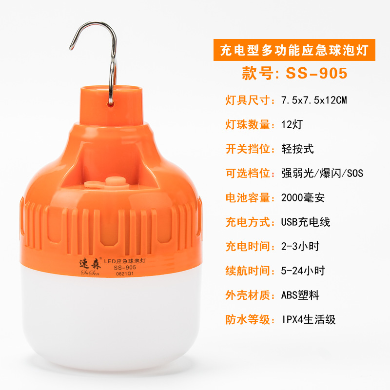 충전식 LED 전구 램프 정전 비상 조명 가정용 이동식 휴대 슈퍼 밝은 야외 야시장 무선 조명