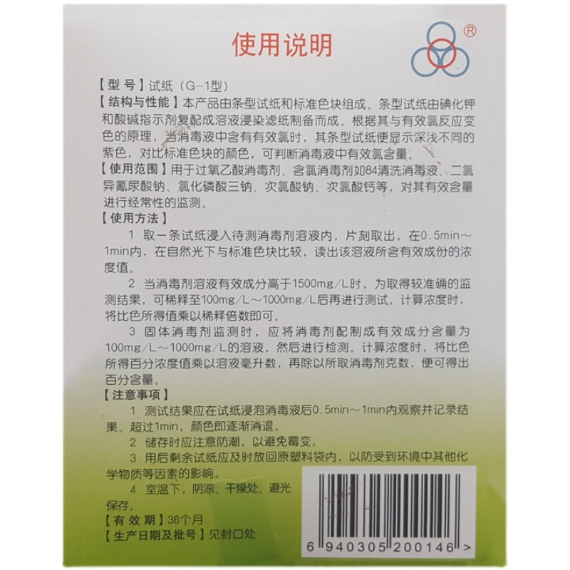 4 링 G-1 형 소독제 농도 시험지 염소 시험지 염소 함유 소독제 시험지 84 소독제
