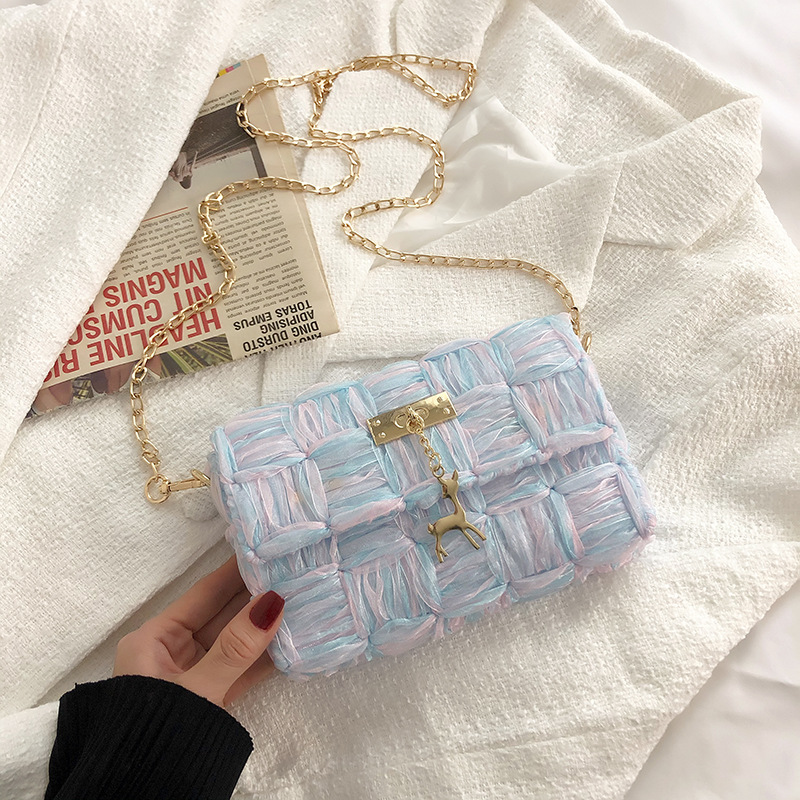 여성 가방 2021 새로운 모든 매치 DIY 스노우 원사 짠 가방 수제 소재 가방 패션 체인 숄더 크로스 바디 백