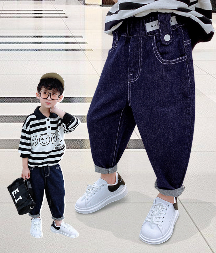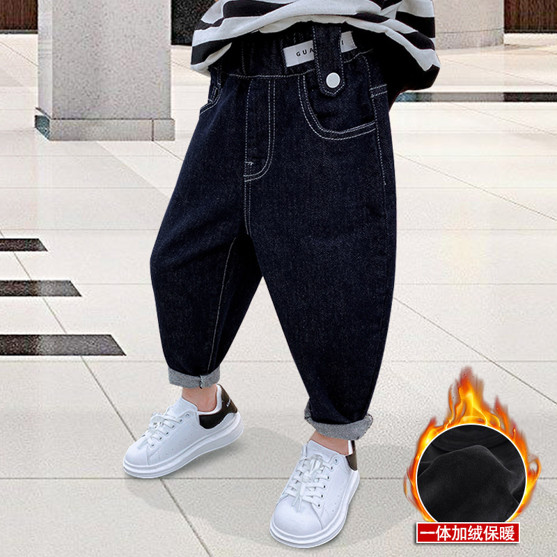 남아용 청바지 2025 봄 신상 중대형 아동 바지 가을 겨울 한국 스타일 일체형 벨벳 캐주얼 루즈핏 긴바지스토어 가기