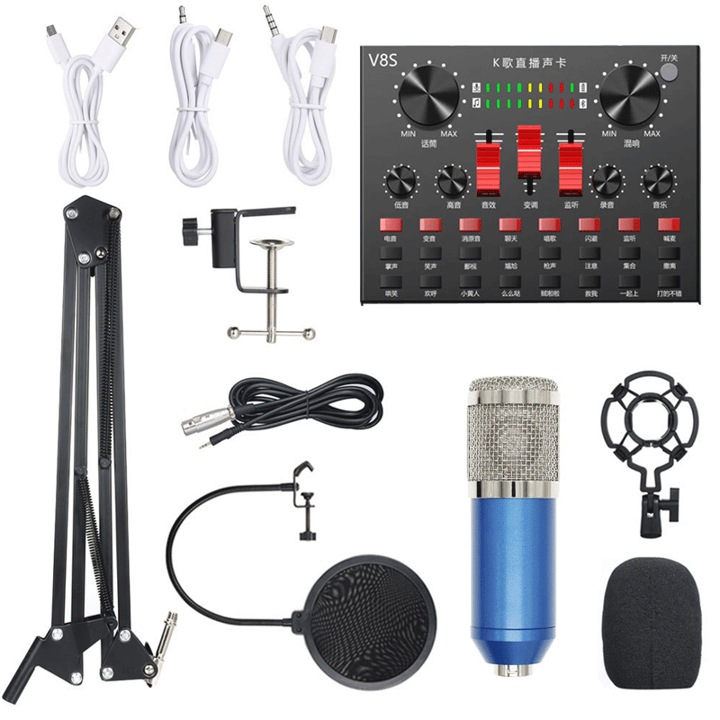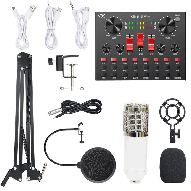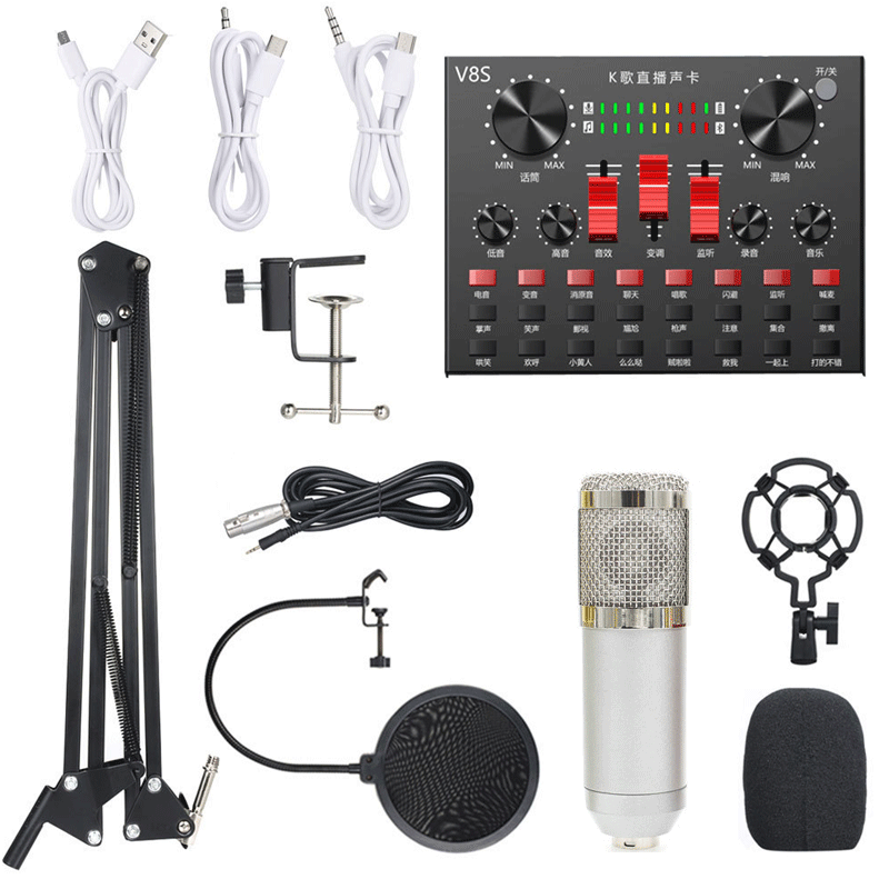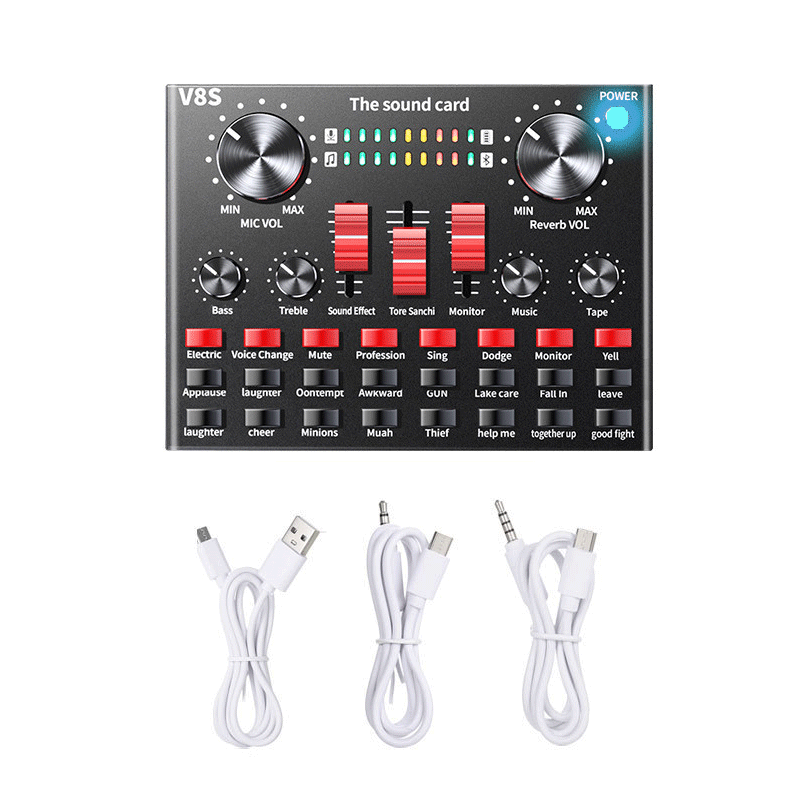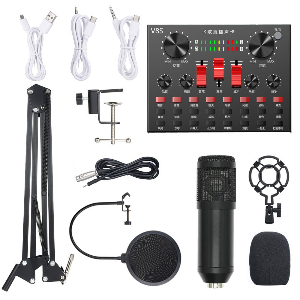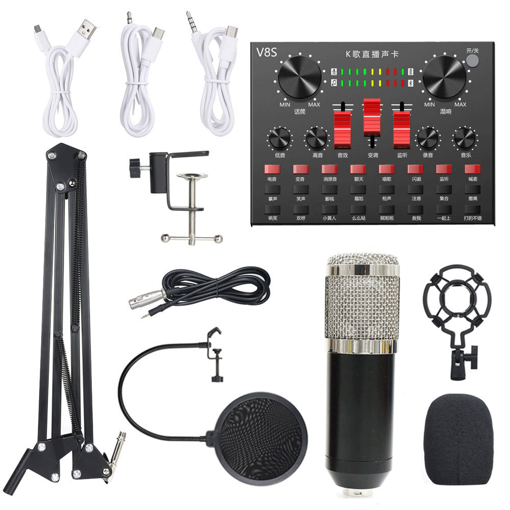 V8S 라이브 사운드 카드 휴대 전화 컴퓨터 K-송 라이브 앵커 전국 녹음 음성 카드 세트