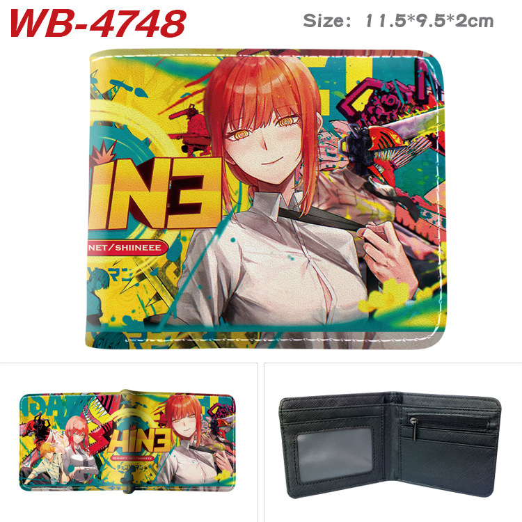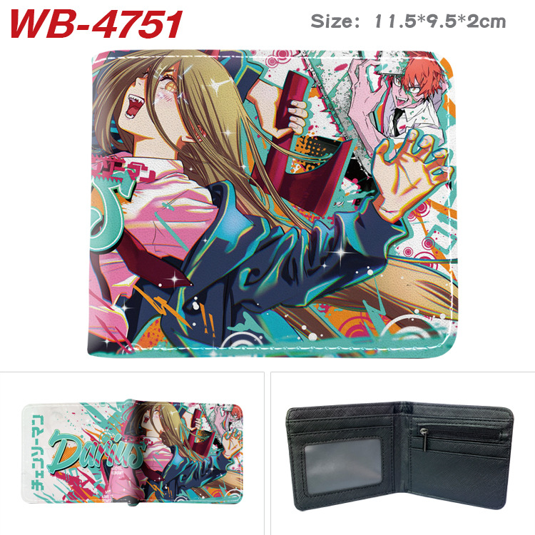 전기톱 애니메이션 주변기기 디지털 인쇄 동전 지갑 남성용 및 여성용 휴대용 대용량 풀 컬러 접이식 가죽 지갑