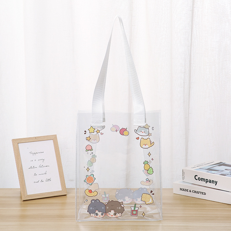 만화 인쇄 PVC 토트 백 도매 투명 싱글 숄더 PVC 토트 백 보관 숄더백 로고 인쇄 가능