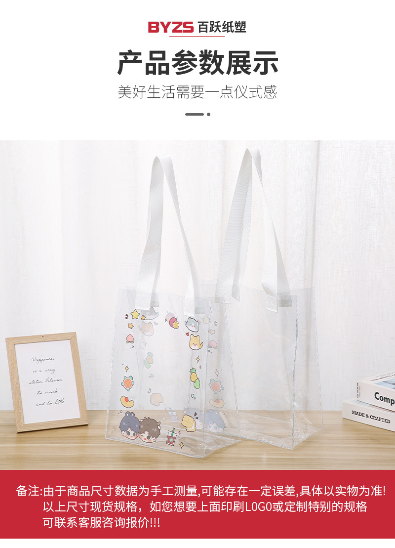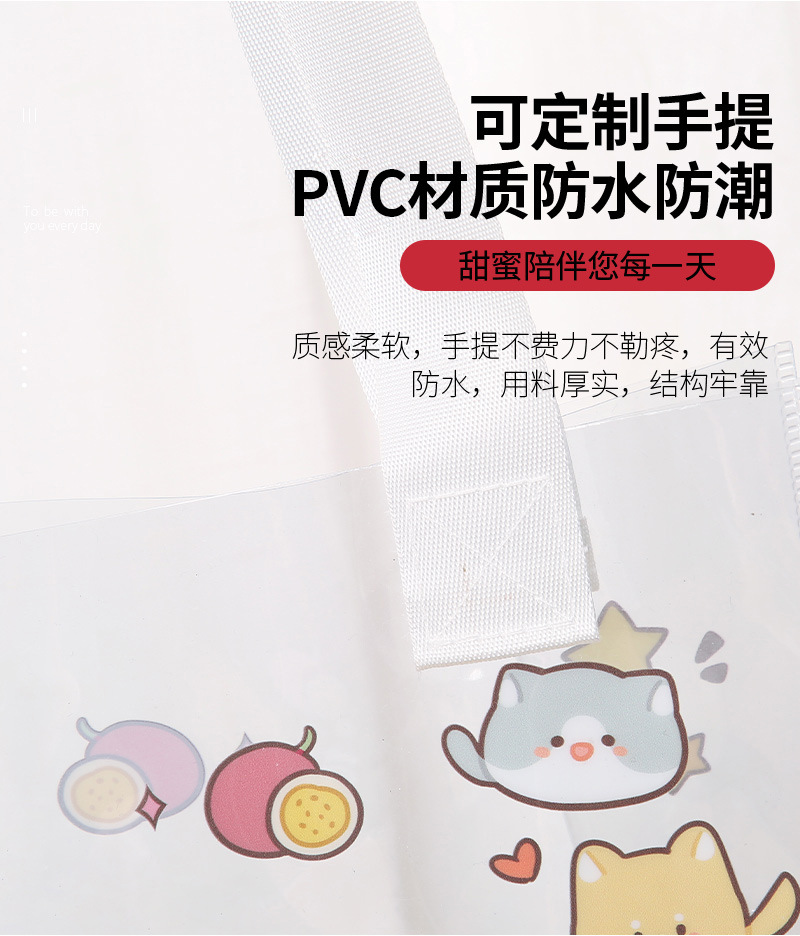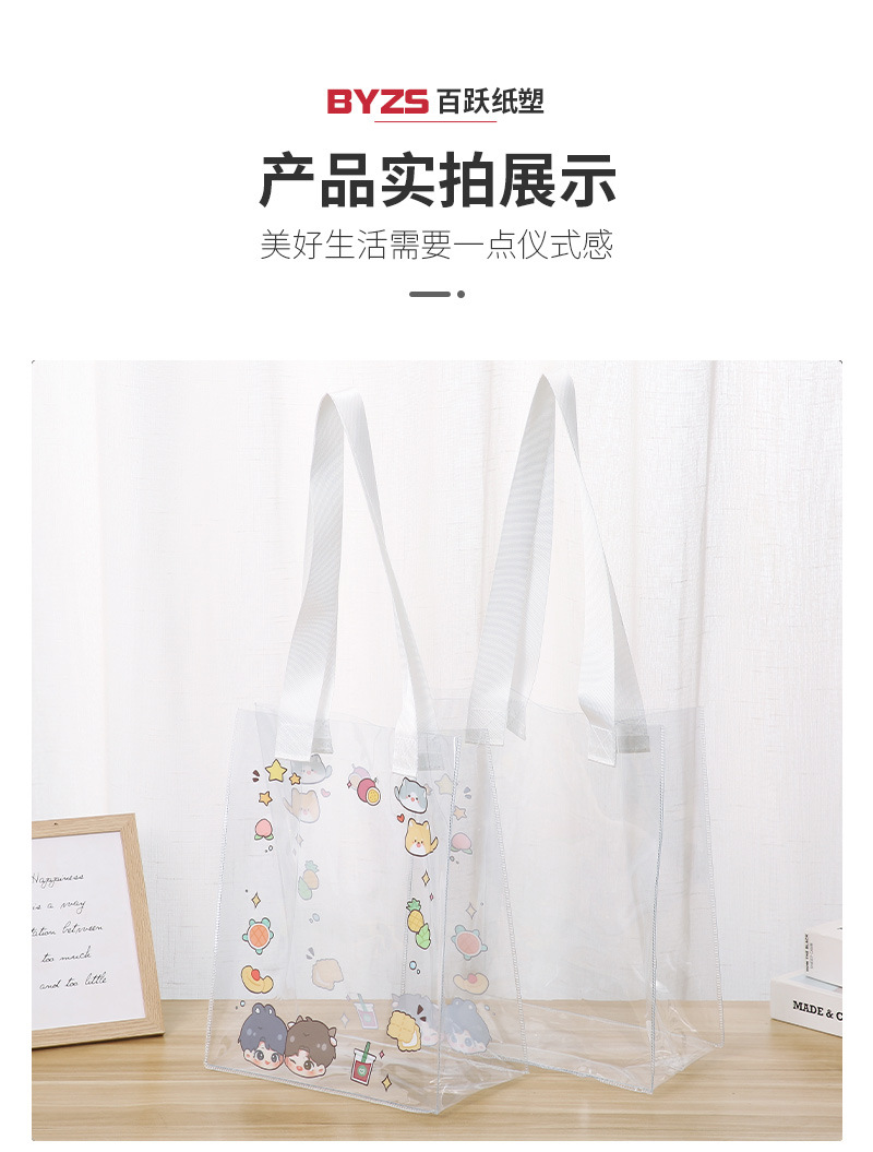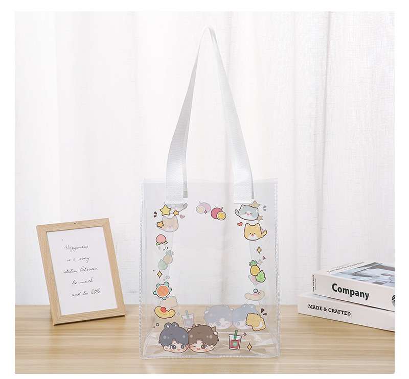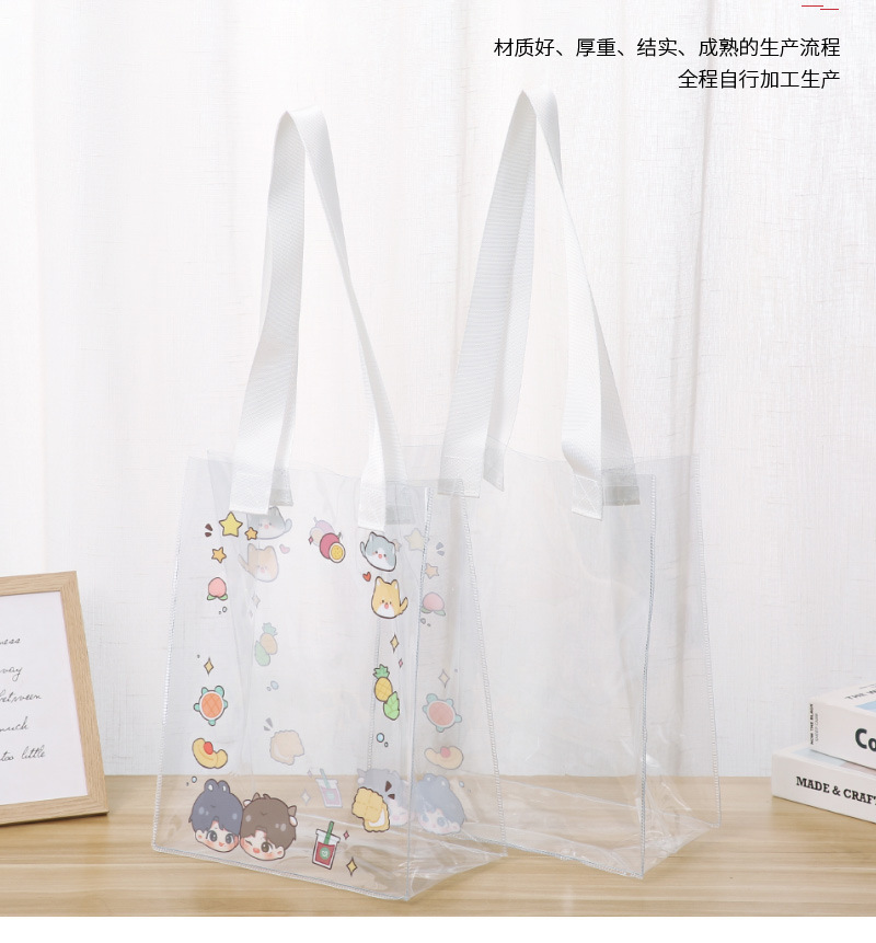 만화 인쇄 PVC 토트 백 도매 투명 싱글 숄더 PVC 토트 백 보관 숄더백 로고 인쇄 가능스토어 가기