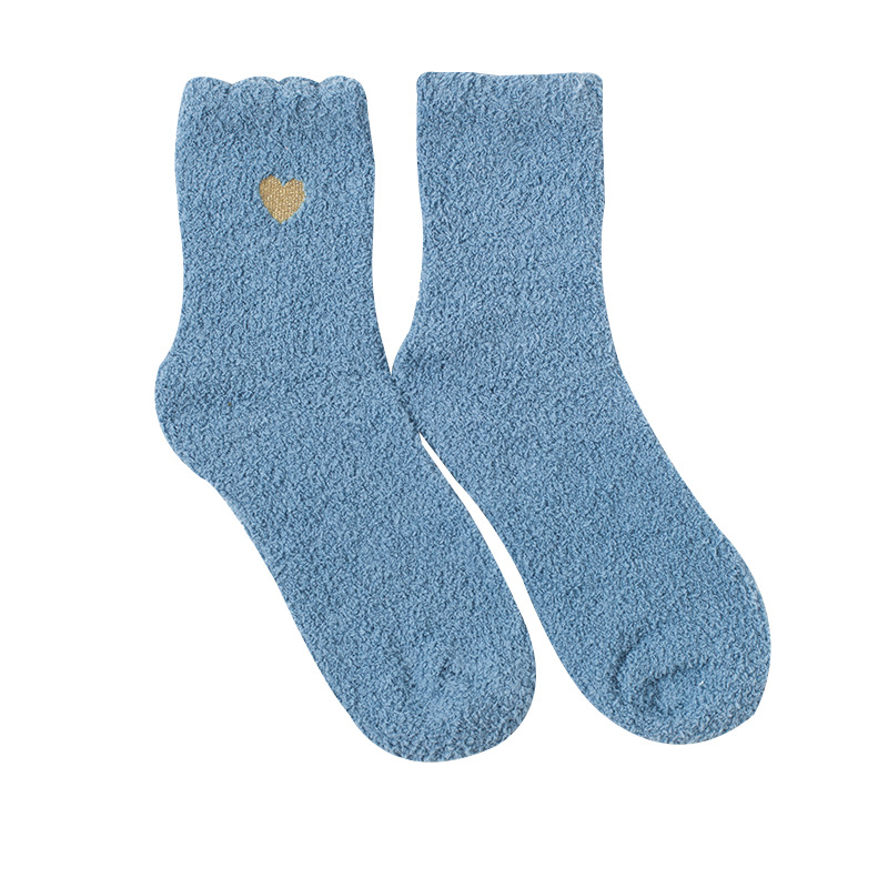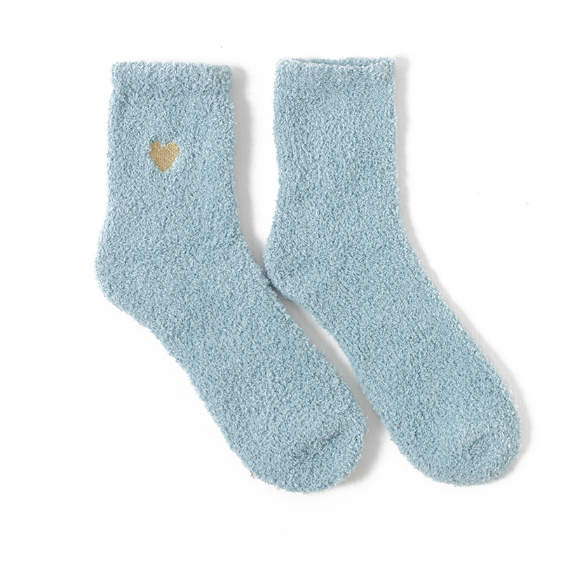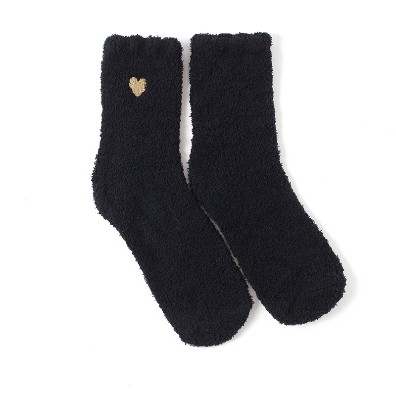 자수 골드 사랑 산호 양털 튜브 양말 여성 가을과 겨울 따뜻한 가정 바닥 양말 반 벨벳 수면 양말 도매