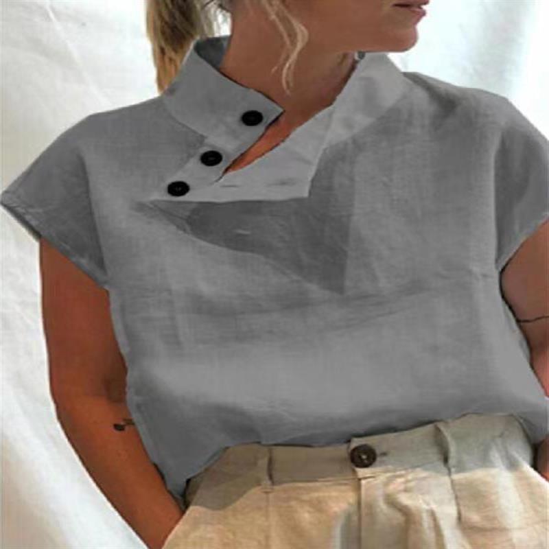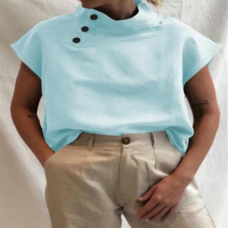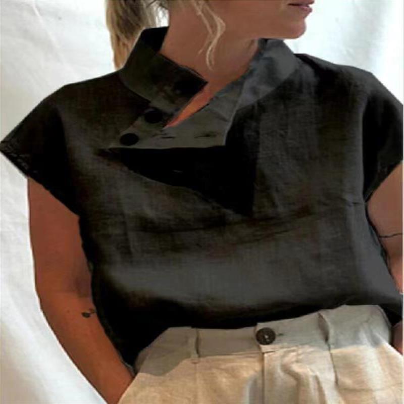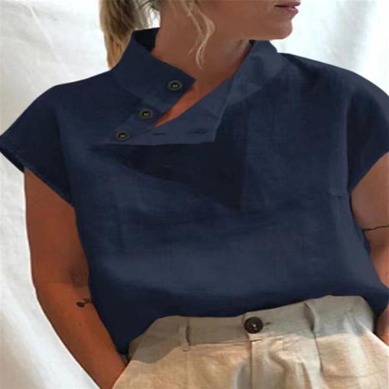 아마존 소원 AliExpress 2021 새로운 유럽과 미국 플러스 사이즈 여성용 민소매 단색 슬림 스탠드 칼라 셔츠