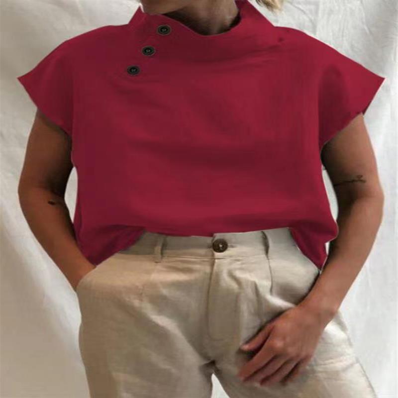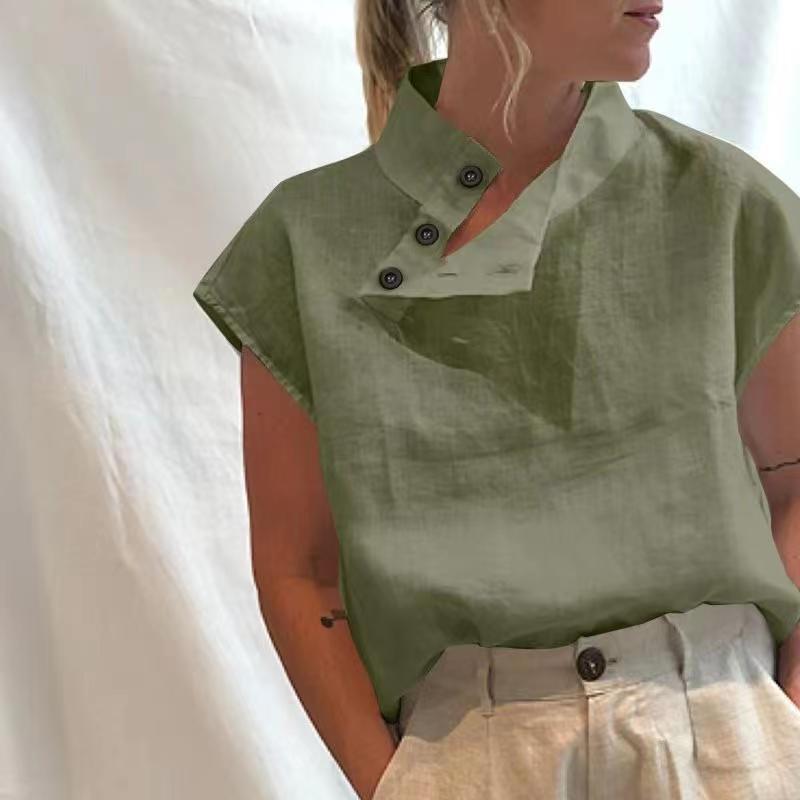 아마존 소원 AliExpress 2021 새로운 유럽과 미국 플러스 사이즈 여성용 민소매 단색 슬림 스탠드 칼라 셔츠스토어 가기