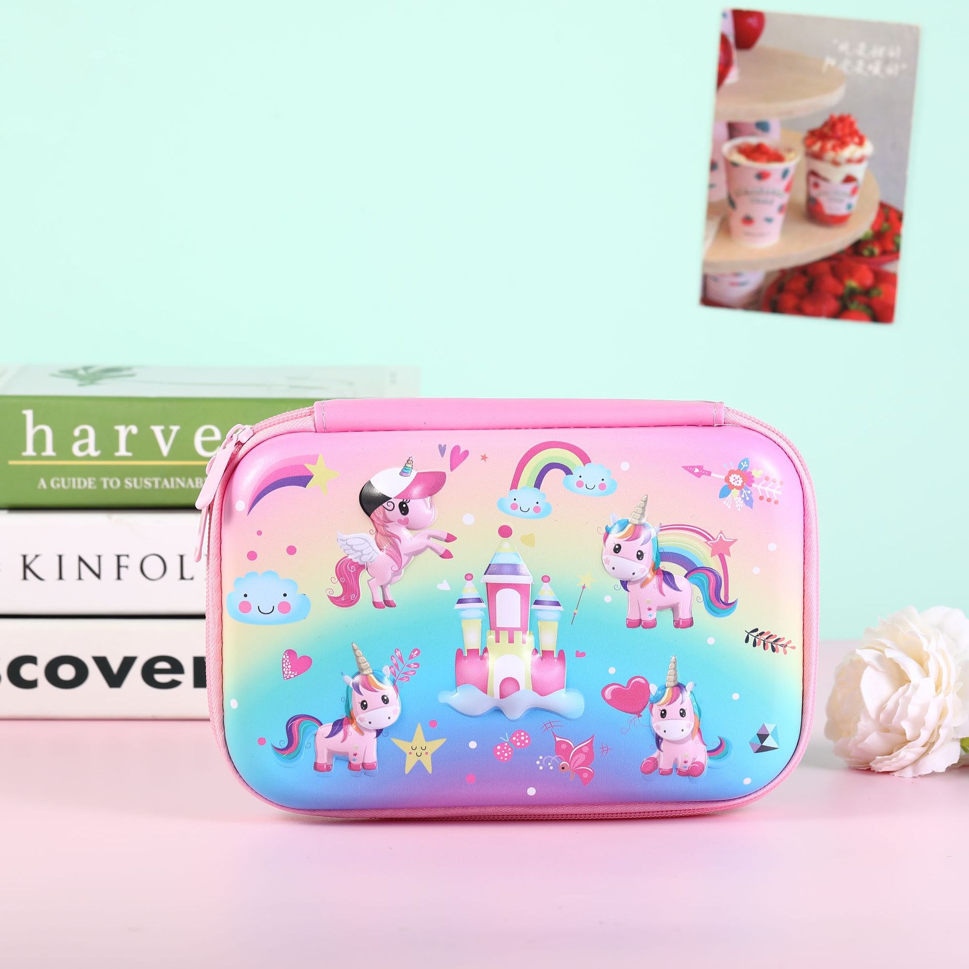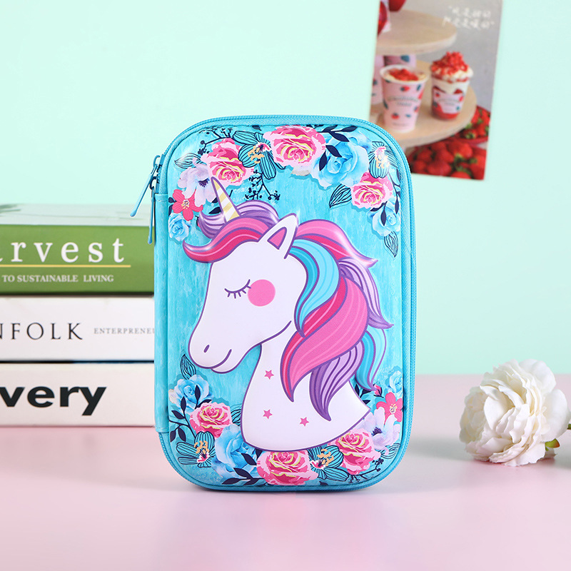 어린이 만화 필통 고급 3D 입체 학교 필통 귀여운 컬러풀 유니콘 초등학생 연필통