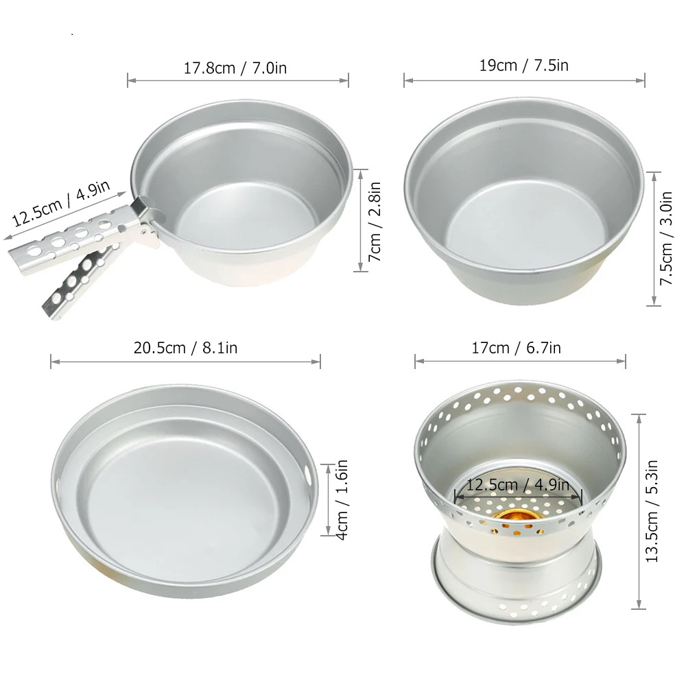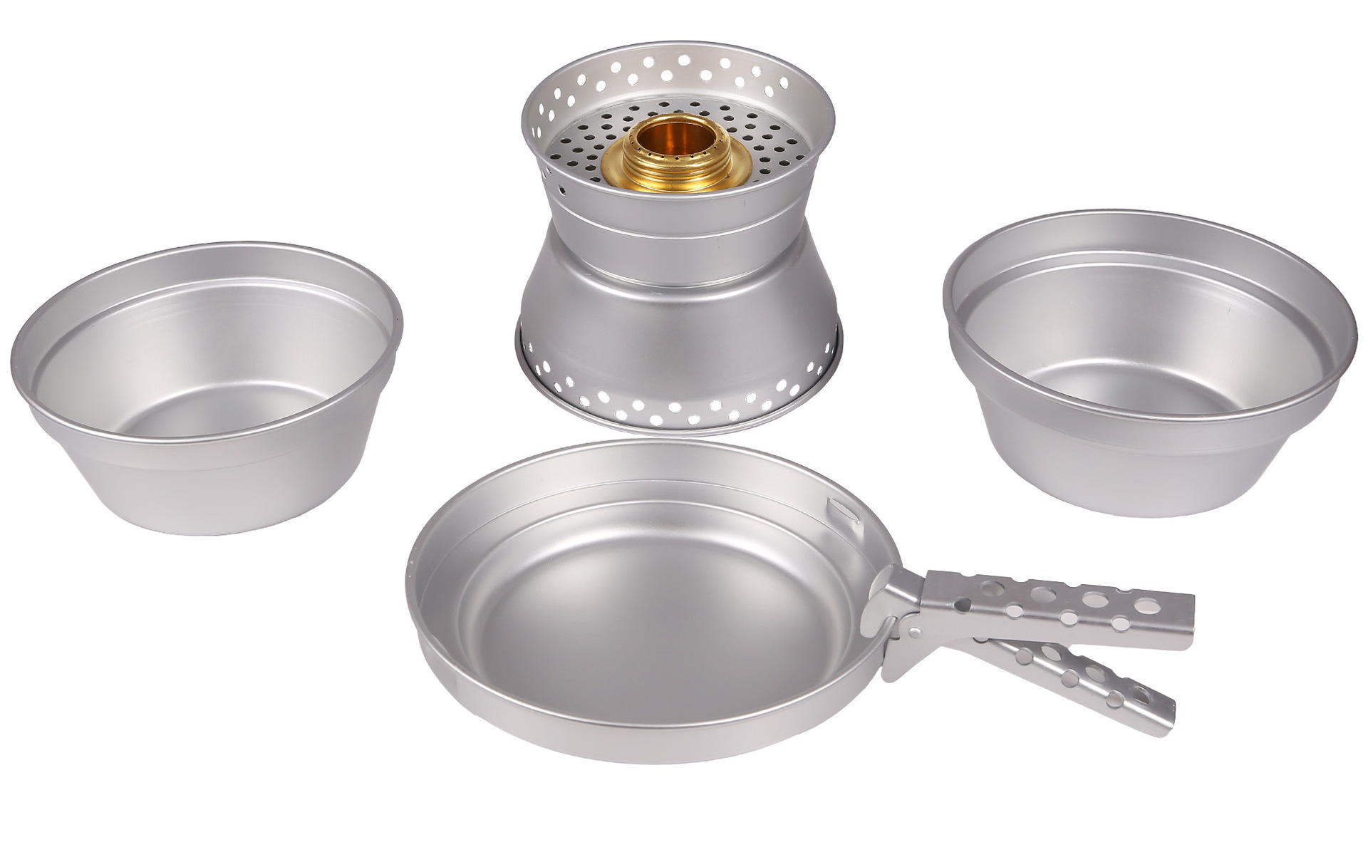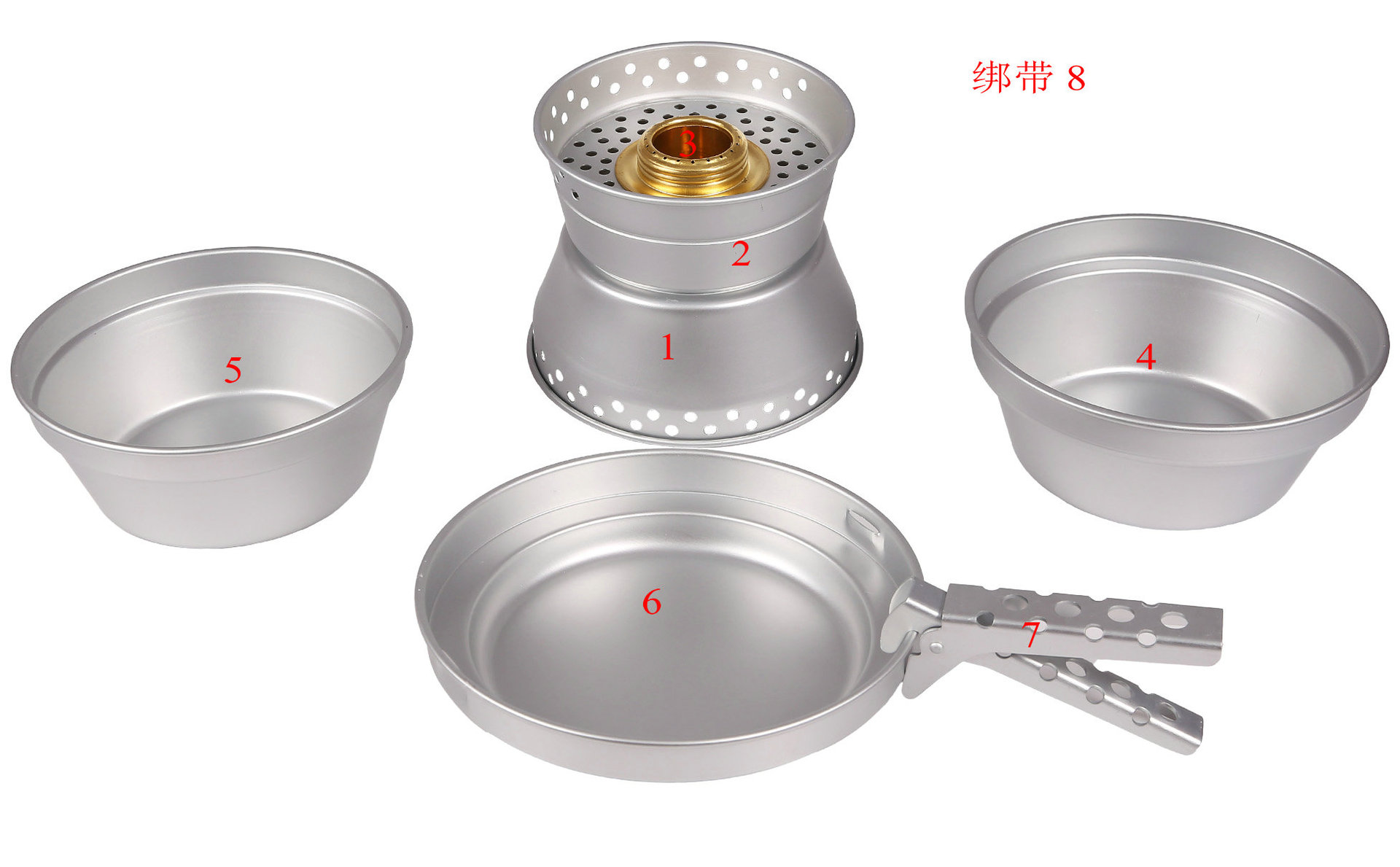 1.5L/1L pot+1 lid+1 brass alcohol burner+1 burner stand+ 1 windshield+1 pot gripper